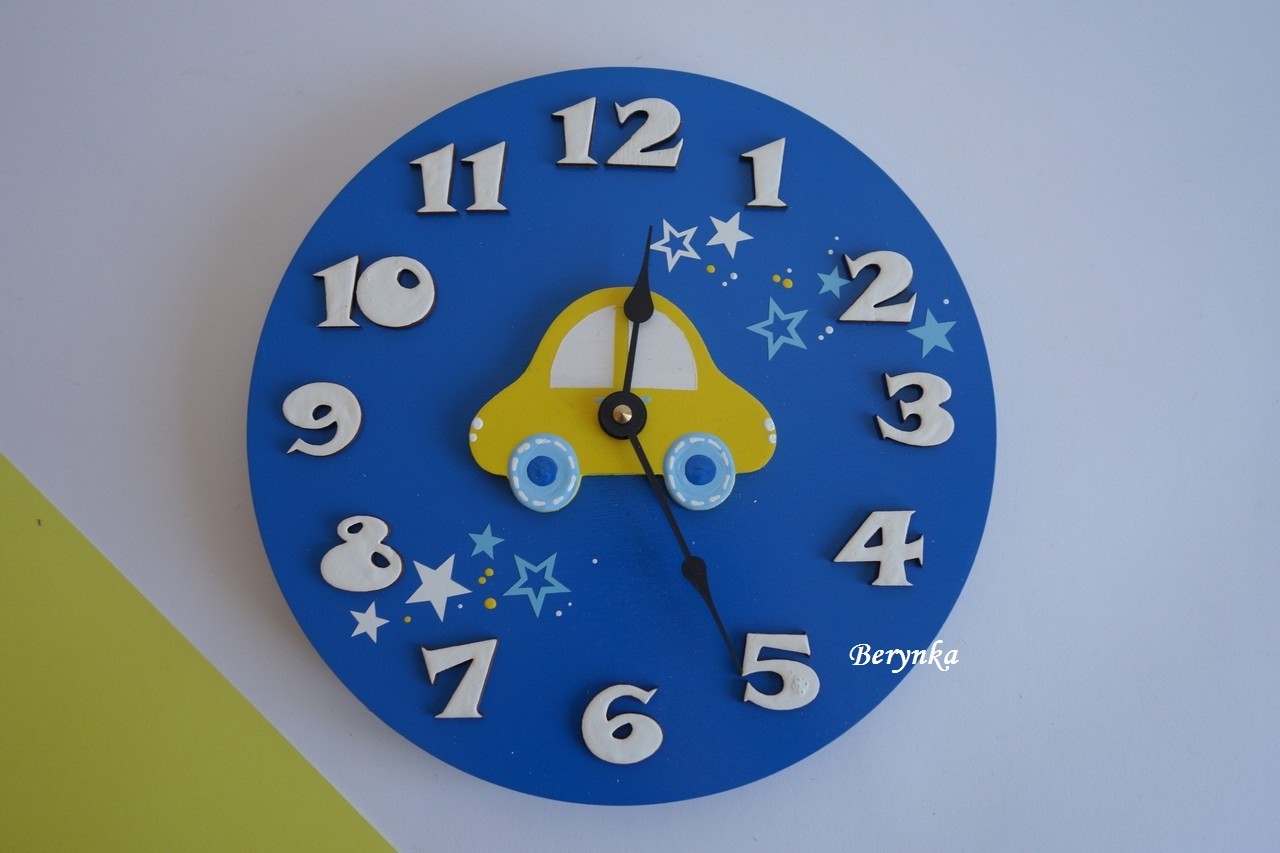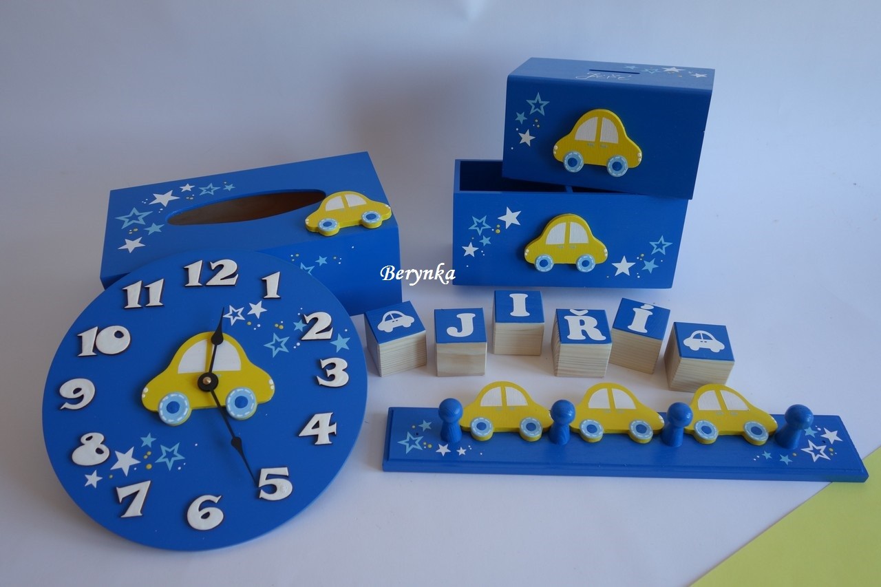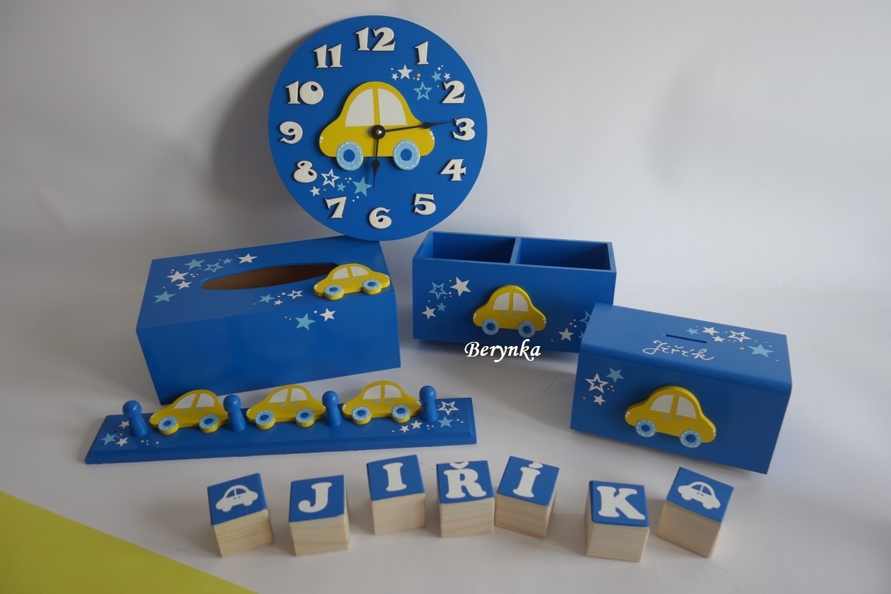 Dekorace tmavě modré se žlutým autíčkem