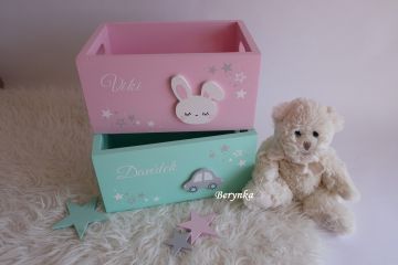 Dřevěné dekorace - mátové a pudrově růžové pro sourozence