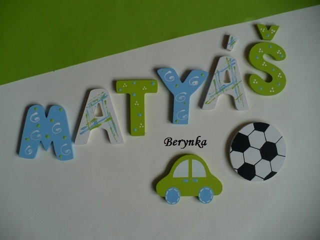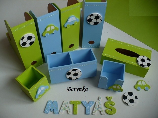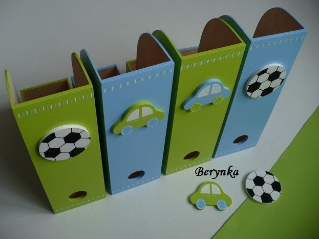 Dřevěné dekorace - s fotbalovým míčem a autíčkem