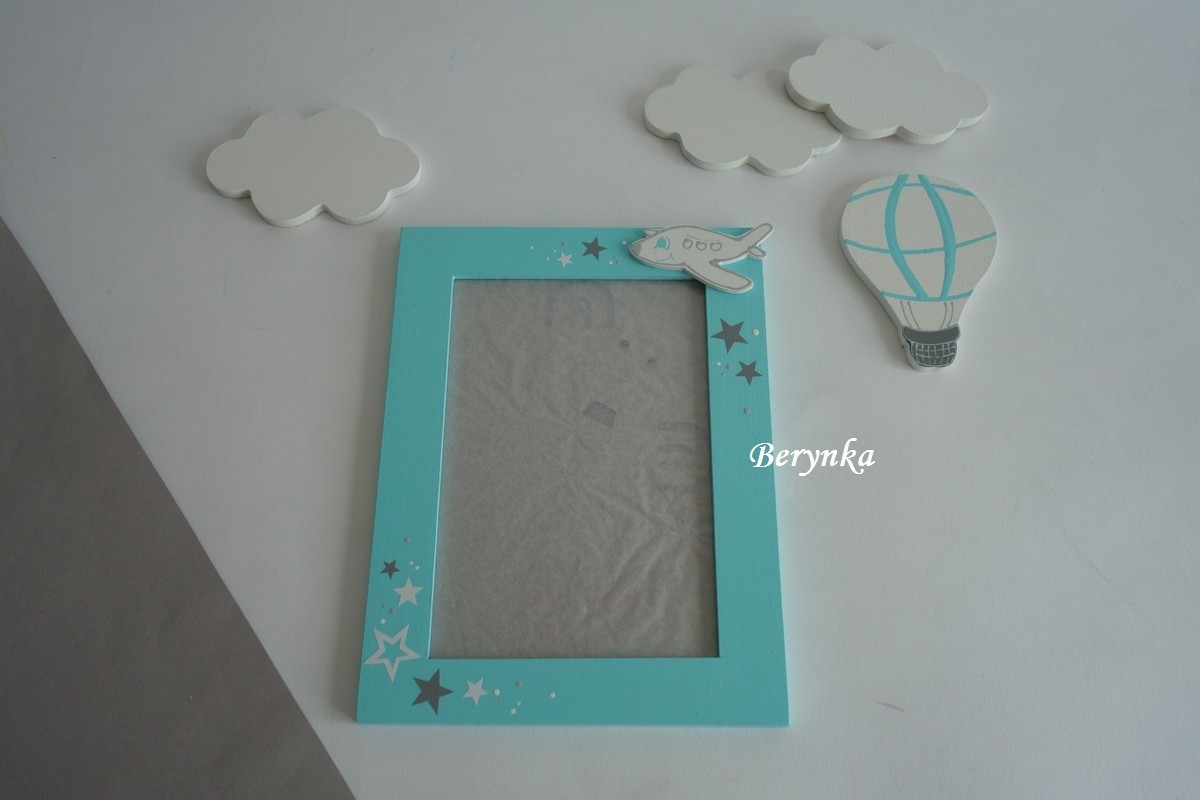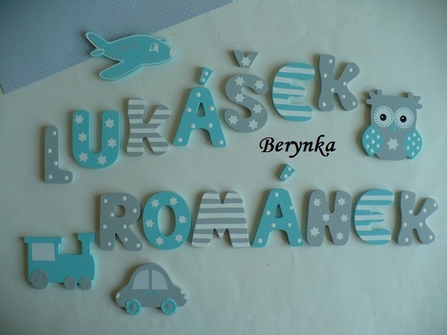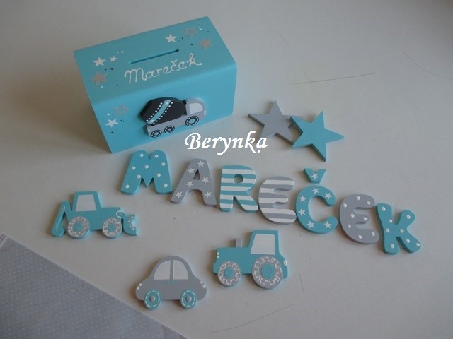 Dřevěné dekorace - tyrkysová s šedou