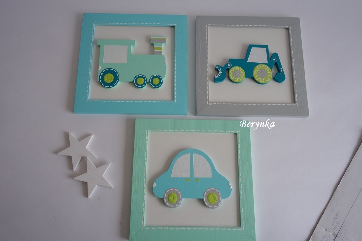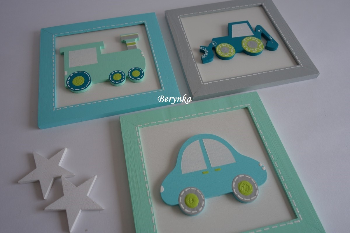 Dřevěné dekorace - tyrkysovo-mátové