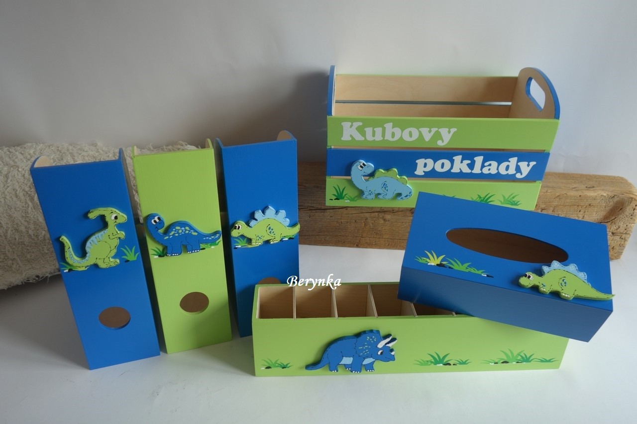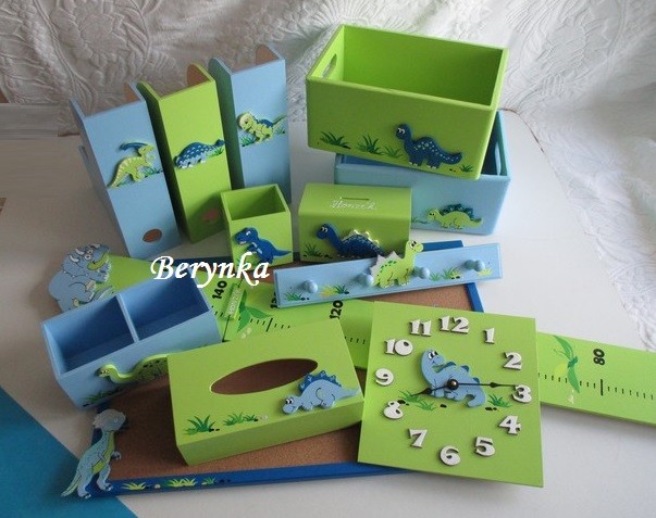 Dřevěné dekorace - zelené s dinosaury