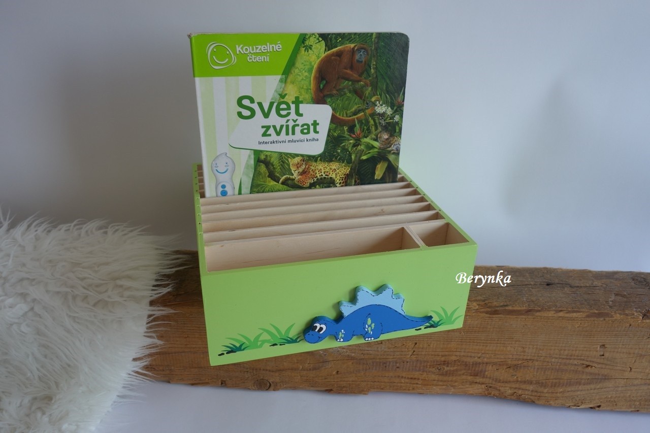 - má 10 samostatných přihrádek na velké knížky a jednu přihrádku na několik menších knížek + přihrádku na tužku