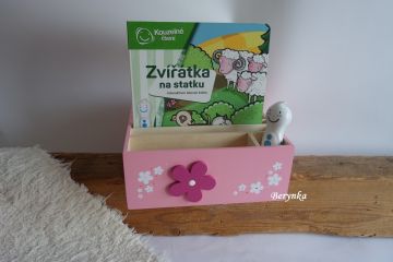 - má 10 samostatných přihrádek na velké knížky a jednu přihrádku na několik menších knížek + přihrádku na tužku