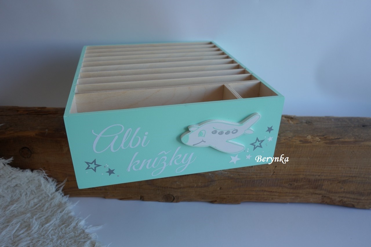 - má 10 samostatných přihrádek na velké knížky a jednu přihrádku na několik menších knížek + přihrádku na tužku
