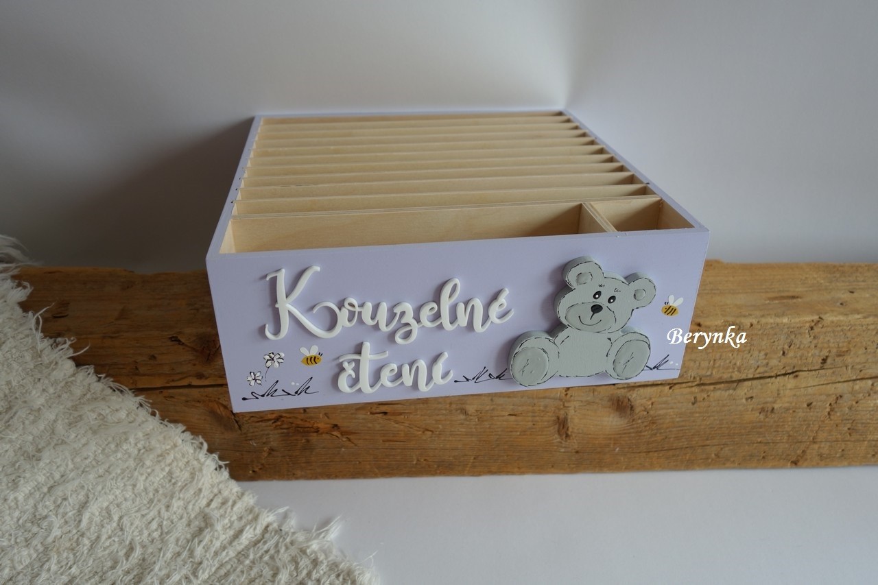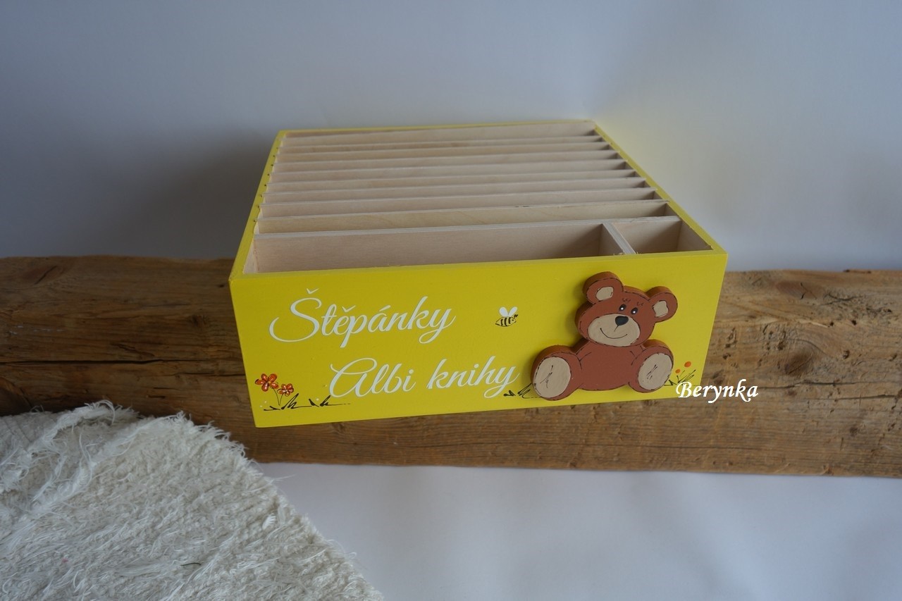 - má 10 samostatných přihrádek na velké knížky a jednu přihrádku na několik menších knížek + přihrádku na tužku