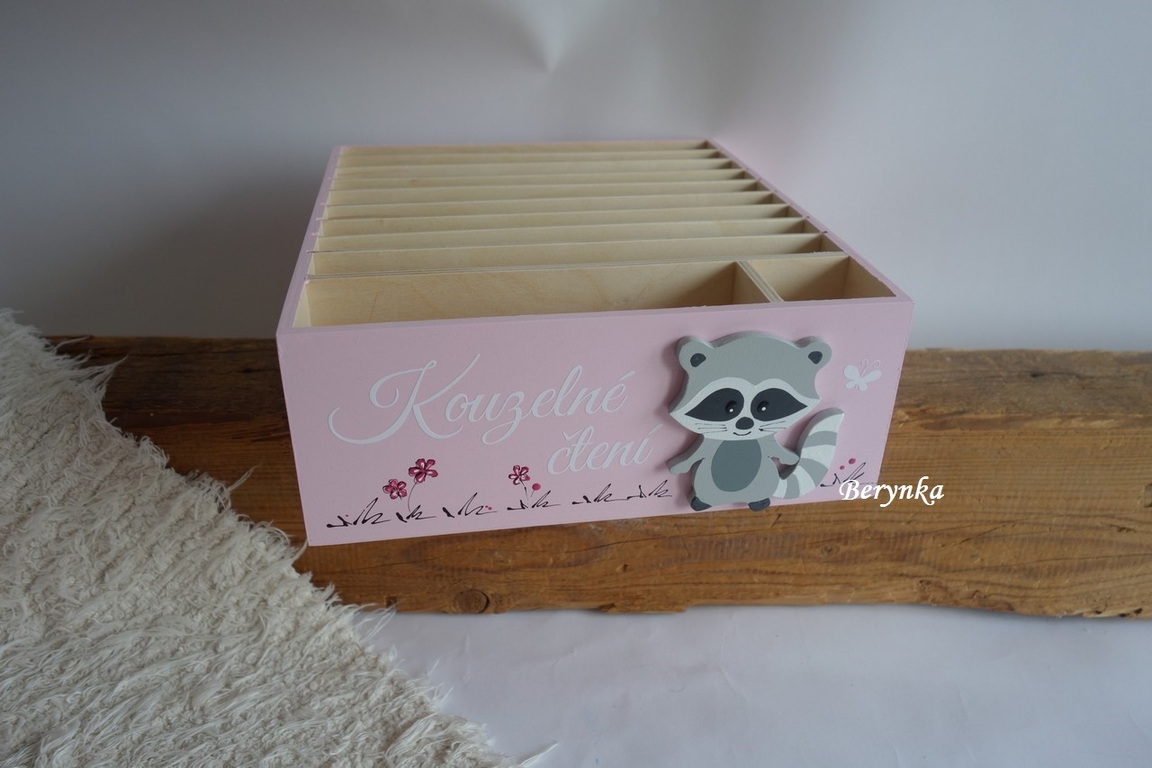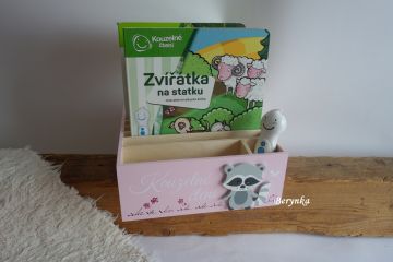 - má 10 samostatných přihrádek na velké knížky a jednu přihrádku na několik menších knížek + přihrádku na tužku