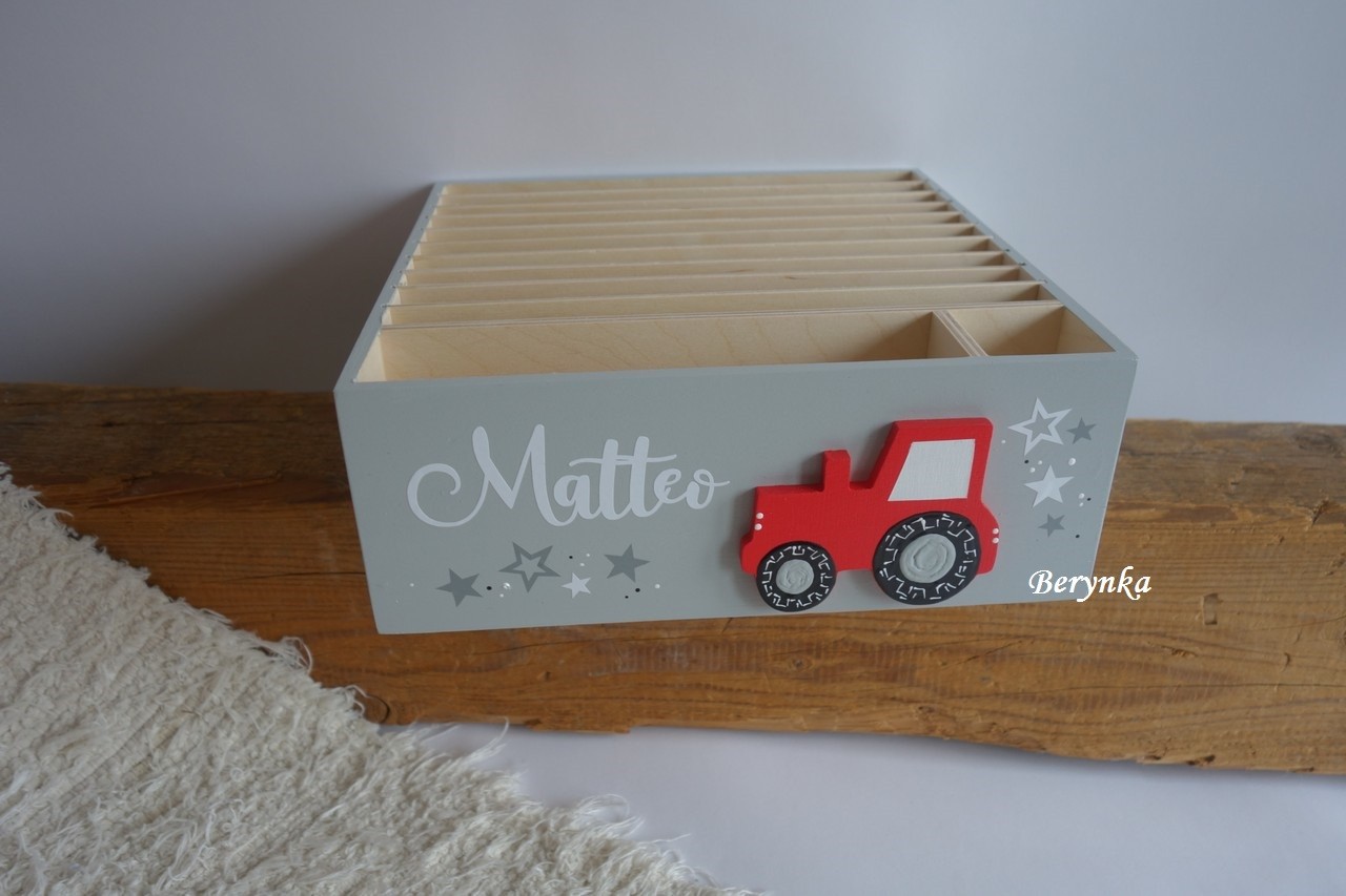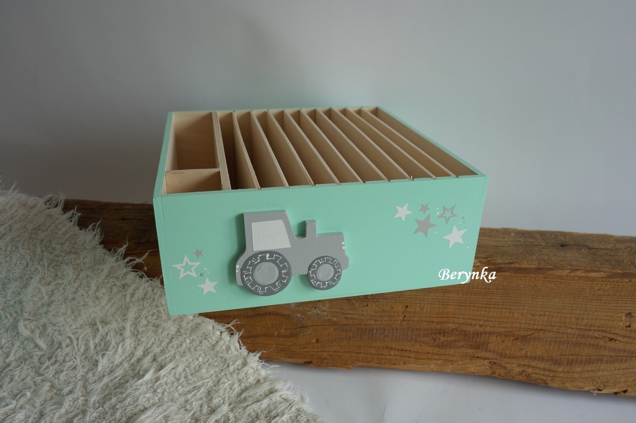 - má 10 samostatných přihrádek na velké knížky a jednu přihrádku na několik menších knížek + přihrádku na tužku