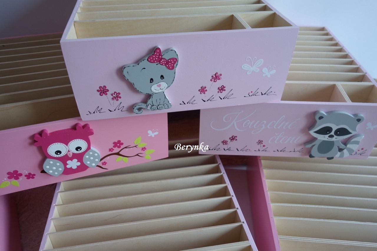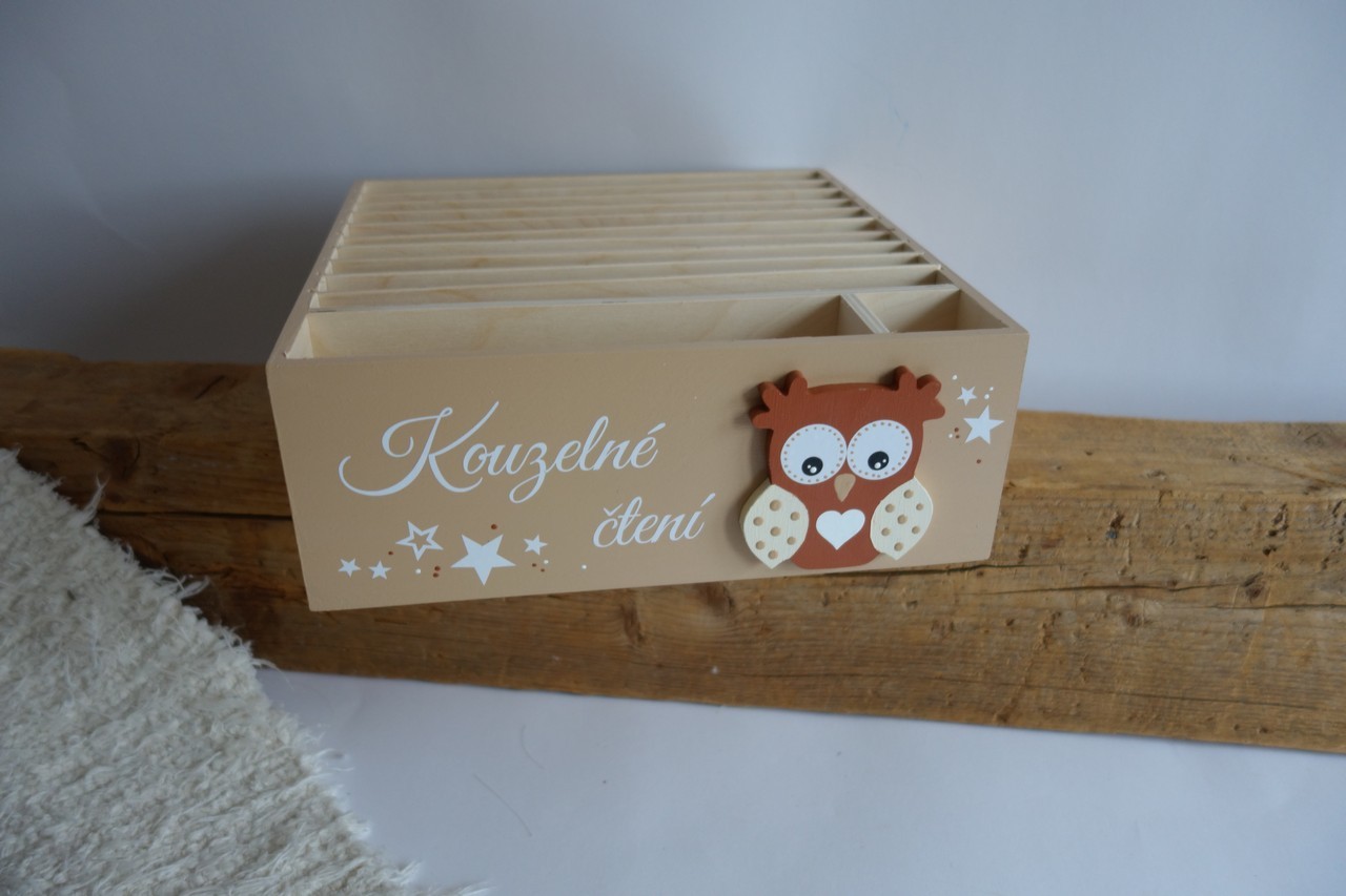 - má 10 samostatných přihrádek na velké knížky a jednu přihrádku na několik menších knížek + přihrádku na tužku
