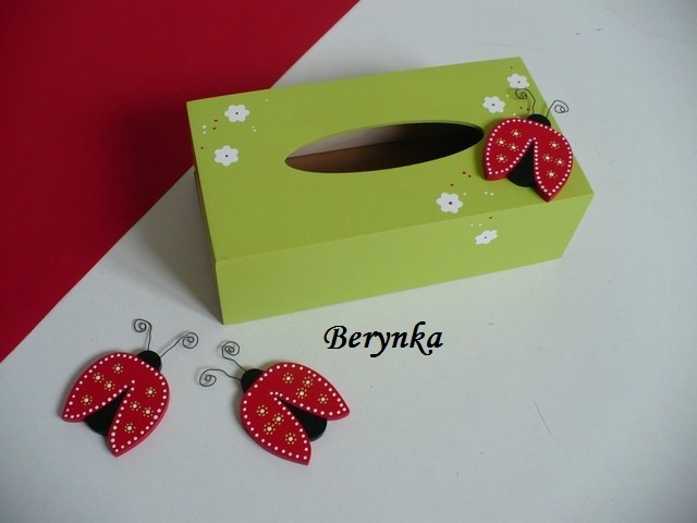 - beruška je ručně vyřezaná z překližky, namalovaná a na krabičce nalepená
