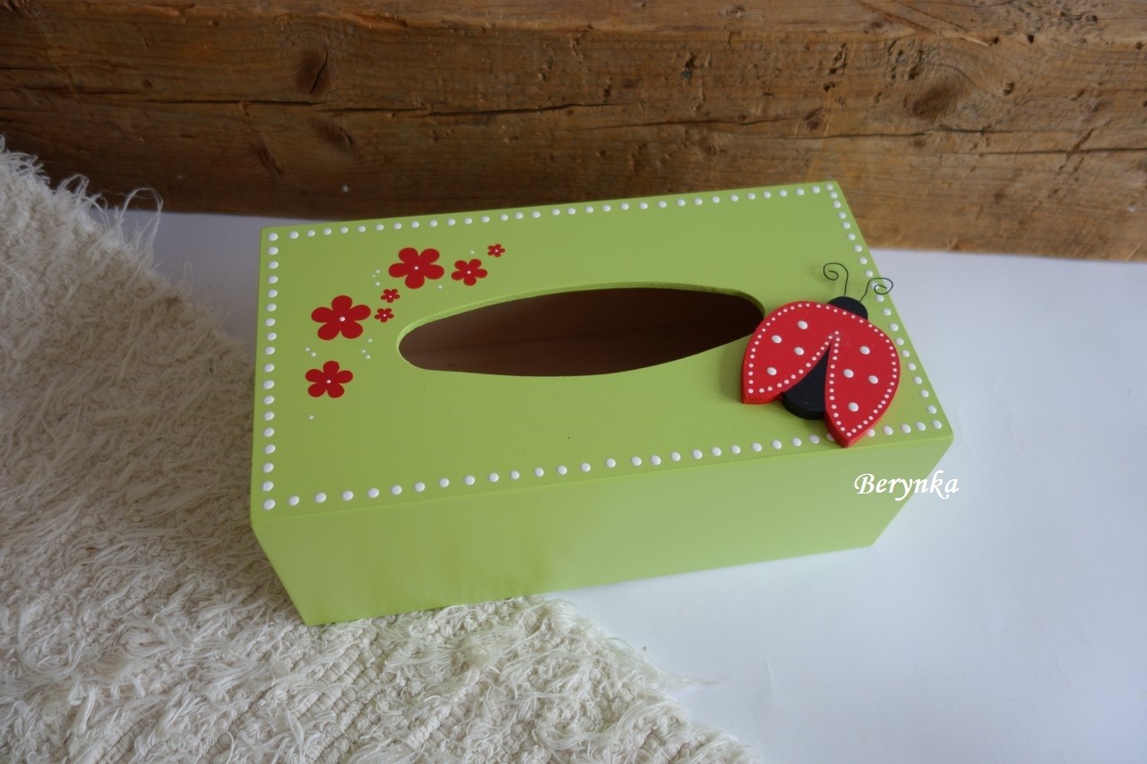 - má vysunovací dno, kapesníky se vloží dovnitř, krabička se zavře se a lze ji snadno přenášet