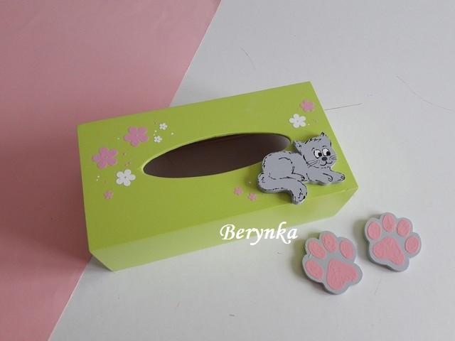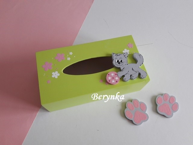 - kočička je ručně vyřezaná z překližky, namalovaná a na krabičce nalepená