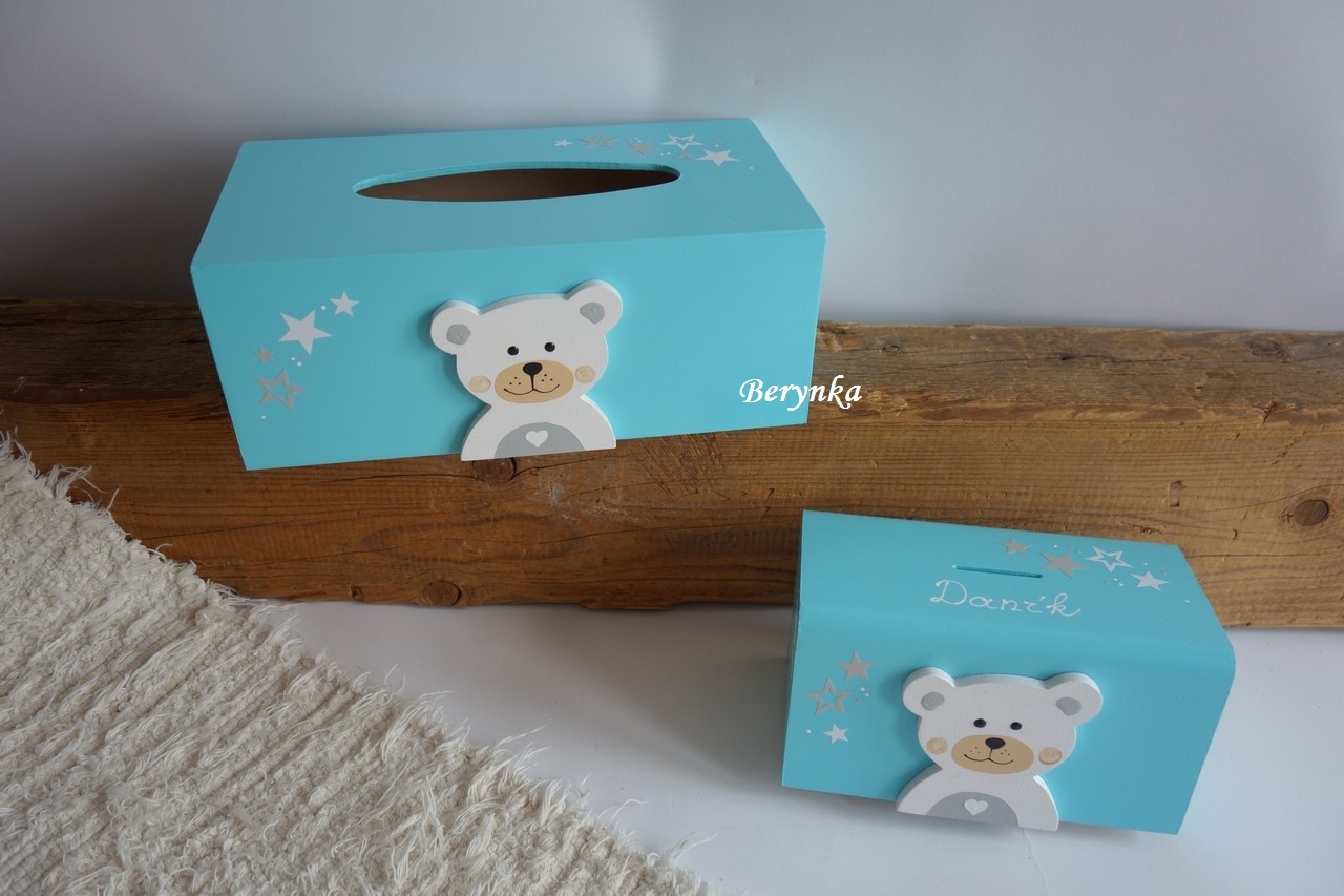 Krabička na kapesníky s medvídkem v nordic stylu