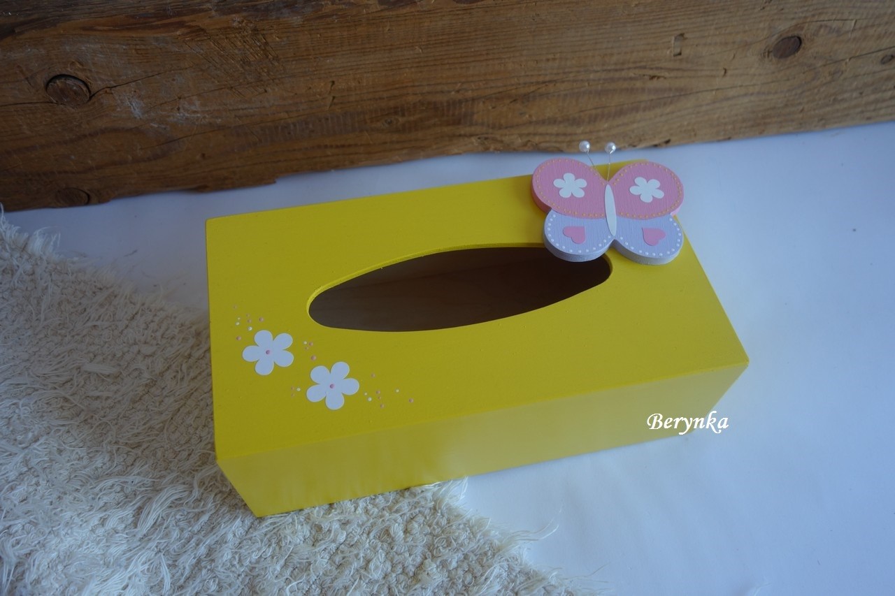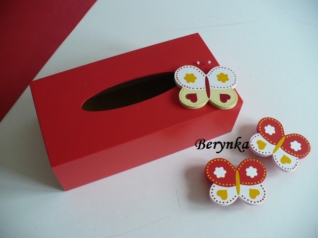 - motýlek je ručně vyřezaný z překližky, namalovaný a na krabičce nalepený