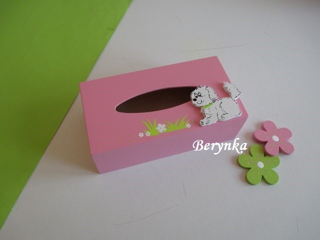 - pejsek je ručně vyřezaný z překližky, namalovaný a na krabičce nalepený