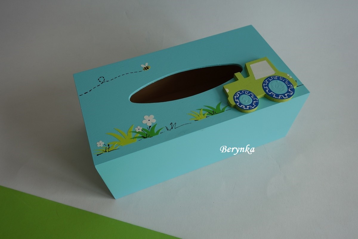 - má vysunovací dno, kapesníky se vloží dovnitř, krabička se zavře se a lze ji snadno přenášet