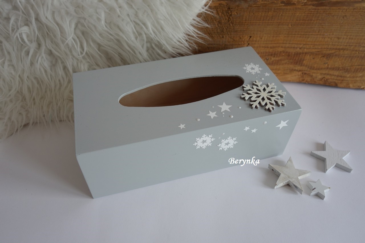 - vločka je ručně vyřezaná z překližky, namalovaná a na krabičce nalepená