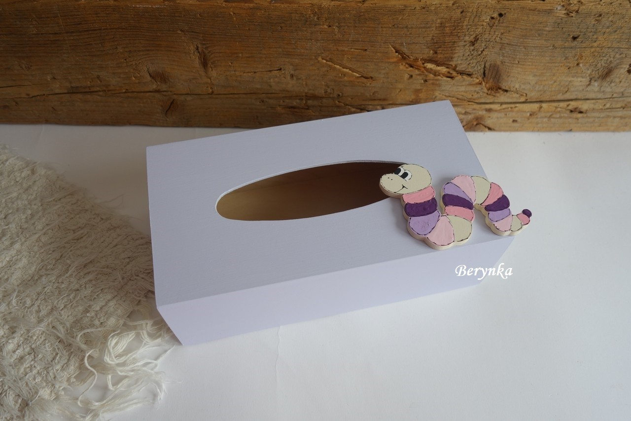 - má vysunovací dno, kapesníky se vloží dovnitř, krabička se zavře se a lze ji snadno přenášet
