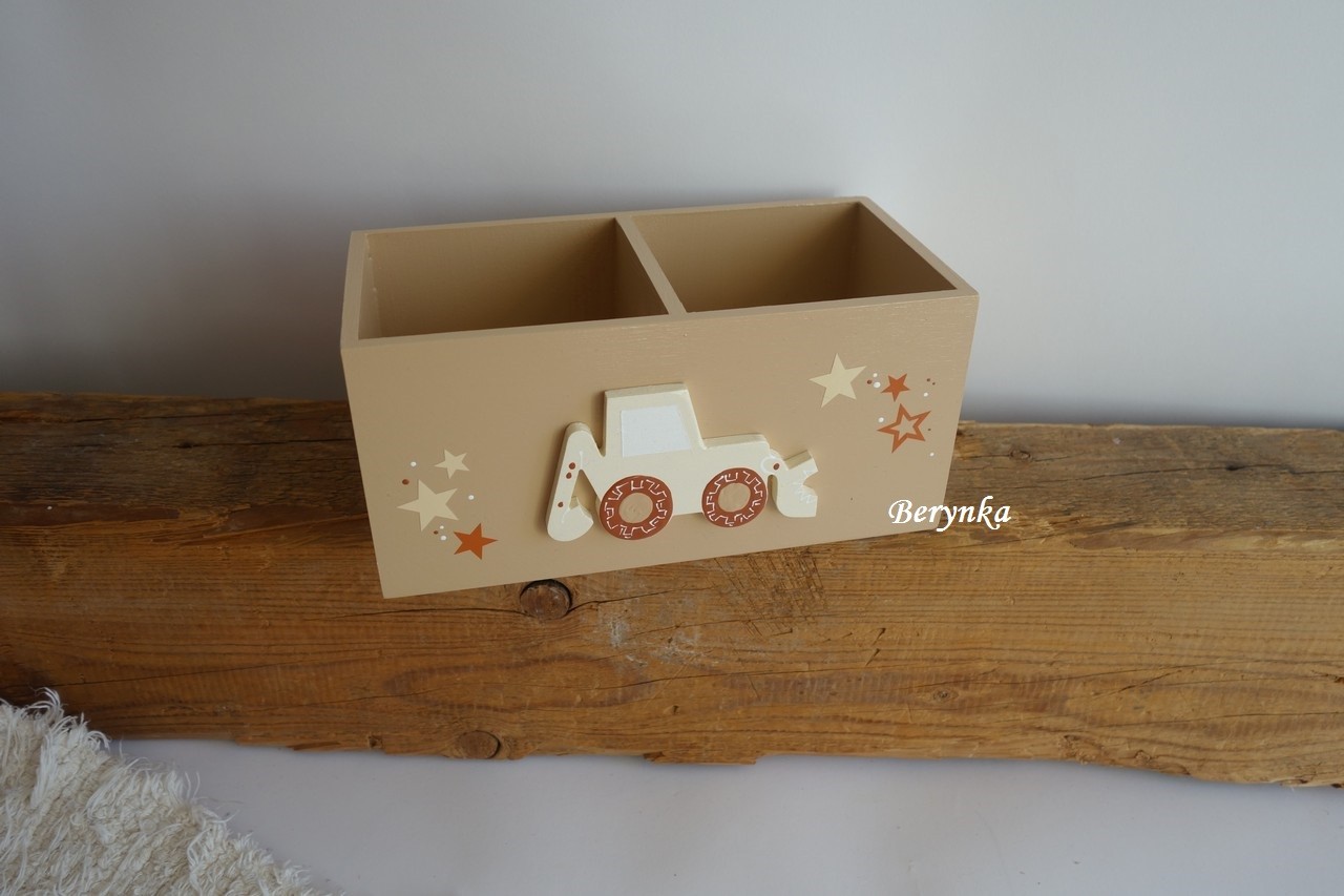 Dřevěný stojánek na tužky s bagrem