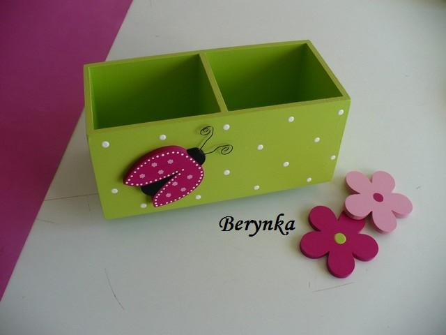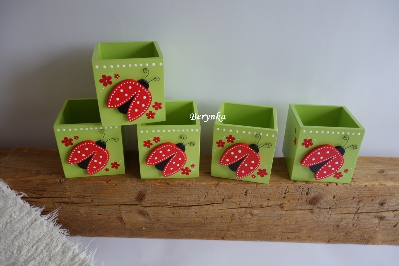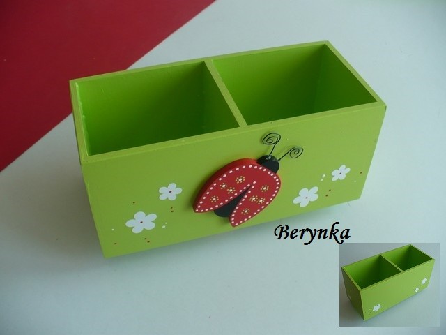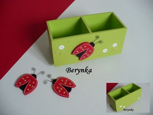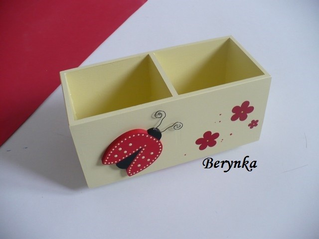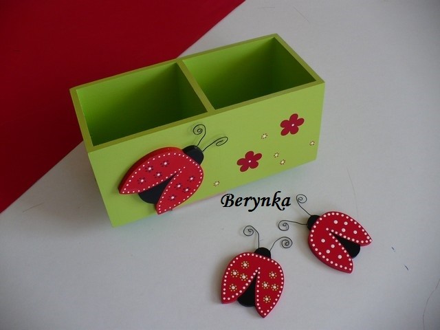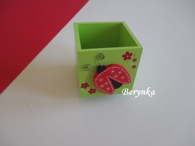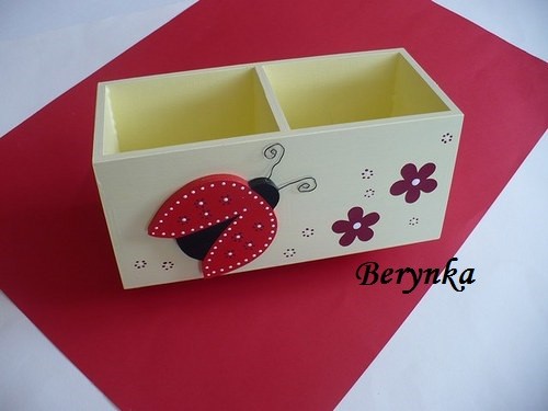 Dřevěný stojánek na tužky s beruškou