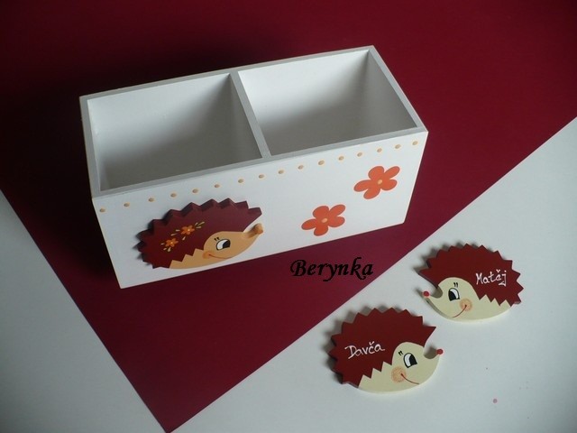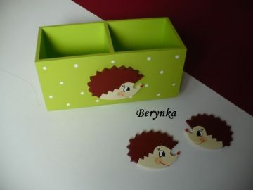 - ježek je ručně vyřezaný z překližky, namalovaný a na stojánku nalepený