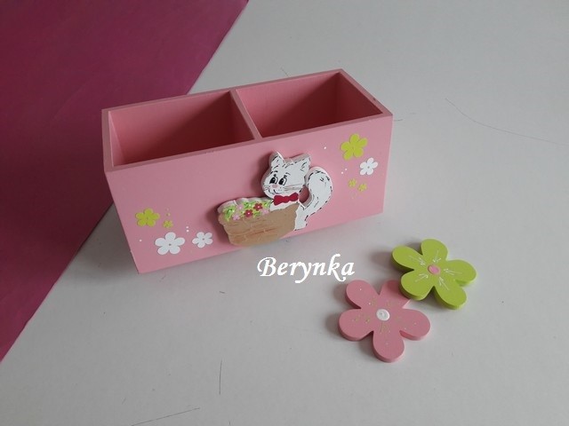 - kočička je ručně vyřezaná z překližky, namalovaná a na stojánku nalepená
