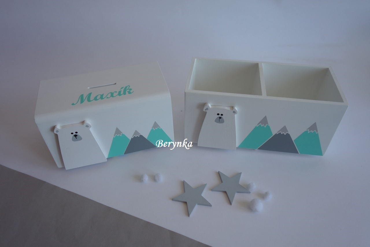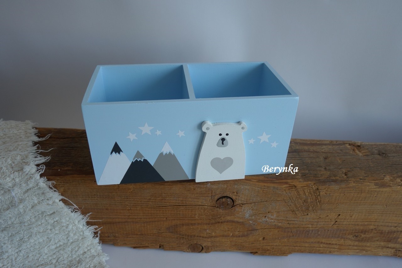 - medvídek je ručně vyřezaný z překližky, namalovaný a na stojánku nalepený