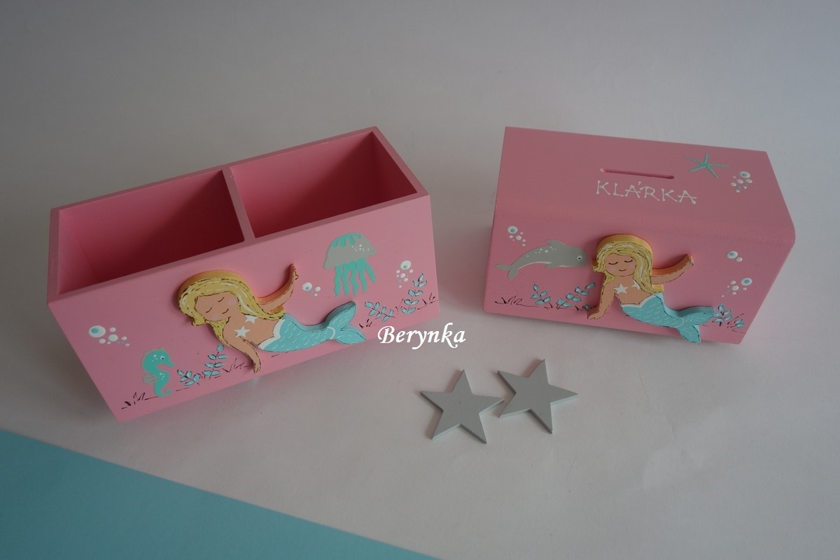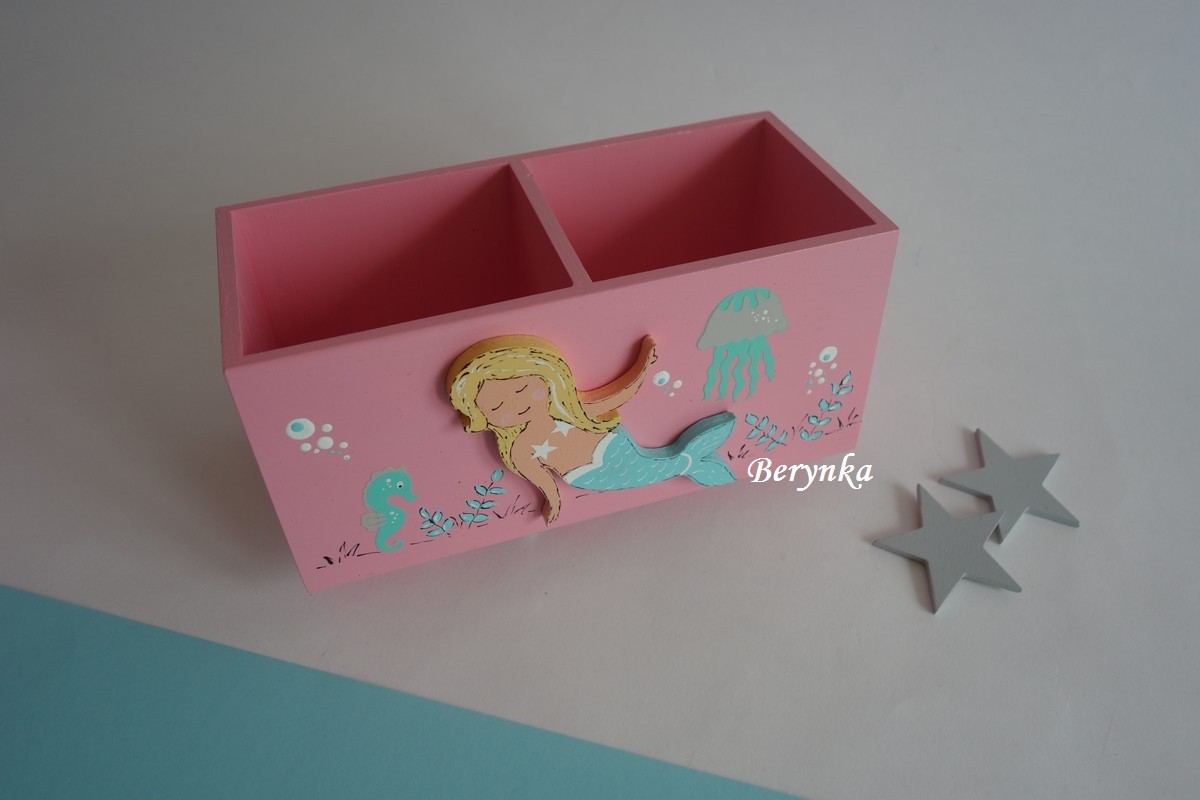 Dřevěný stojánek na tužky s mořskou pannou
