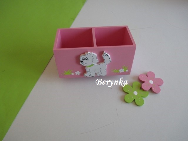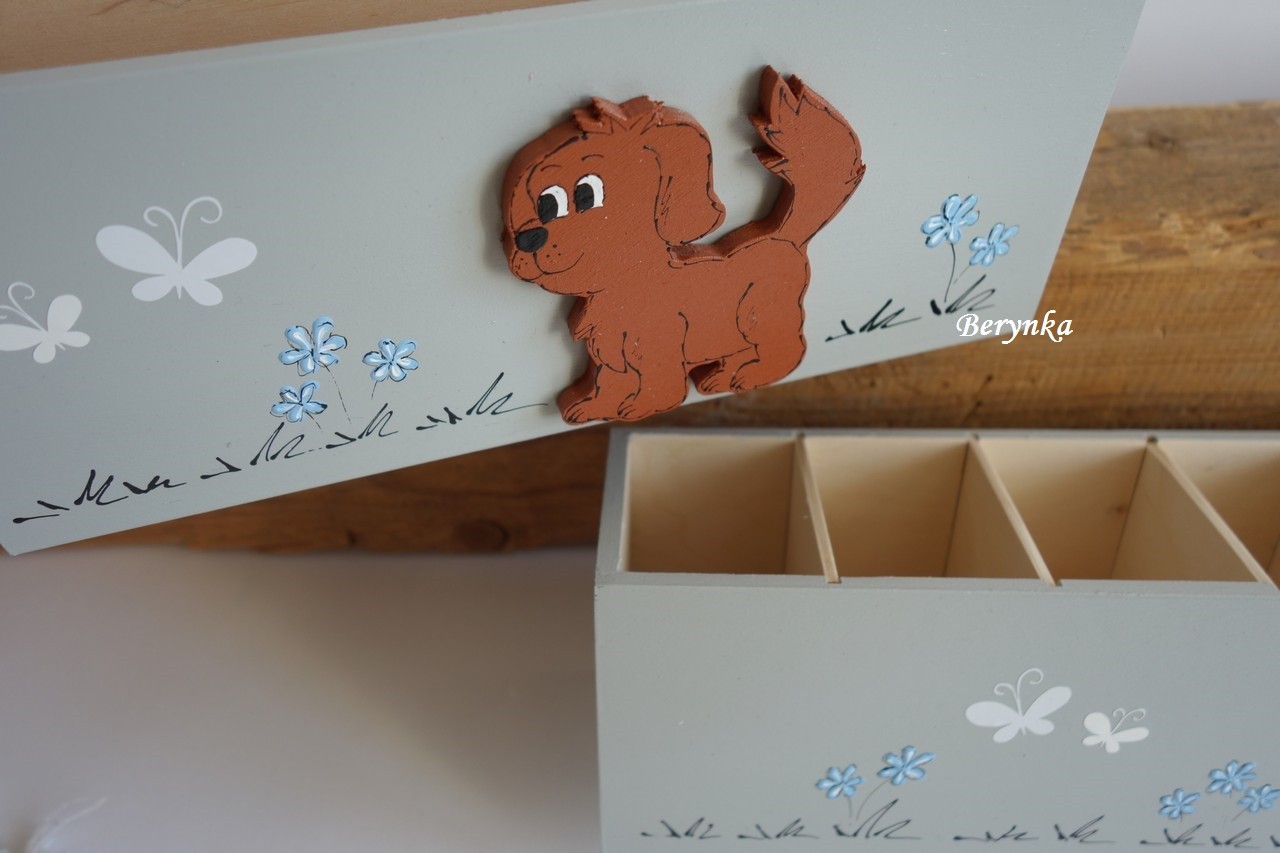 - pejsek je ručně vyřezaný z překližky, namalovaný a na stojánku nalepený