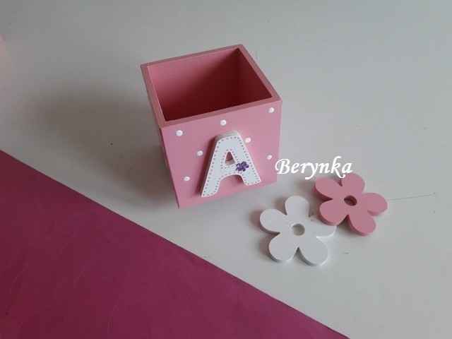 - písmenko je ručně vyřezanáéz překližky, namalované a na stojánku nalepené
