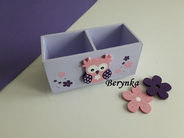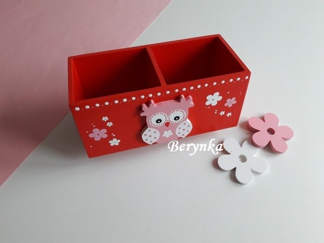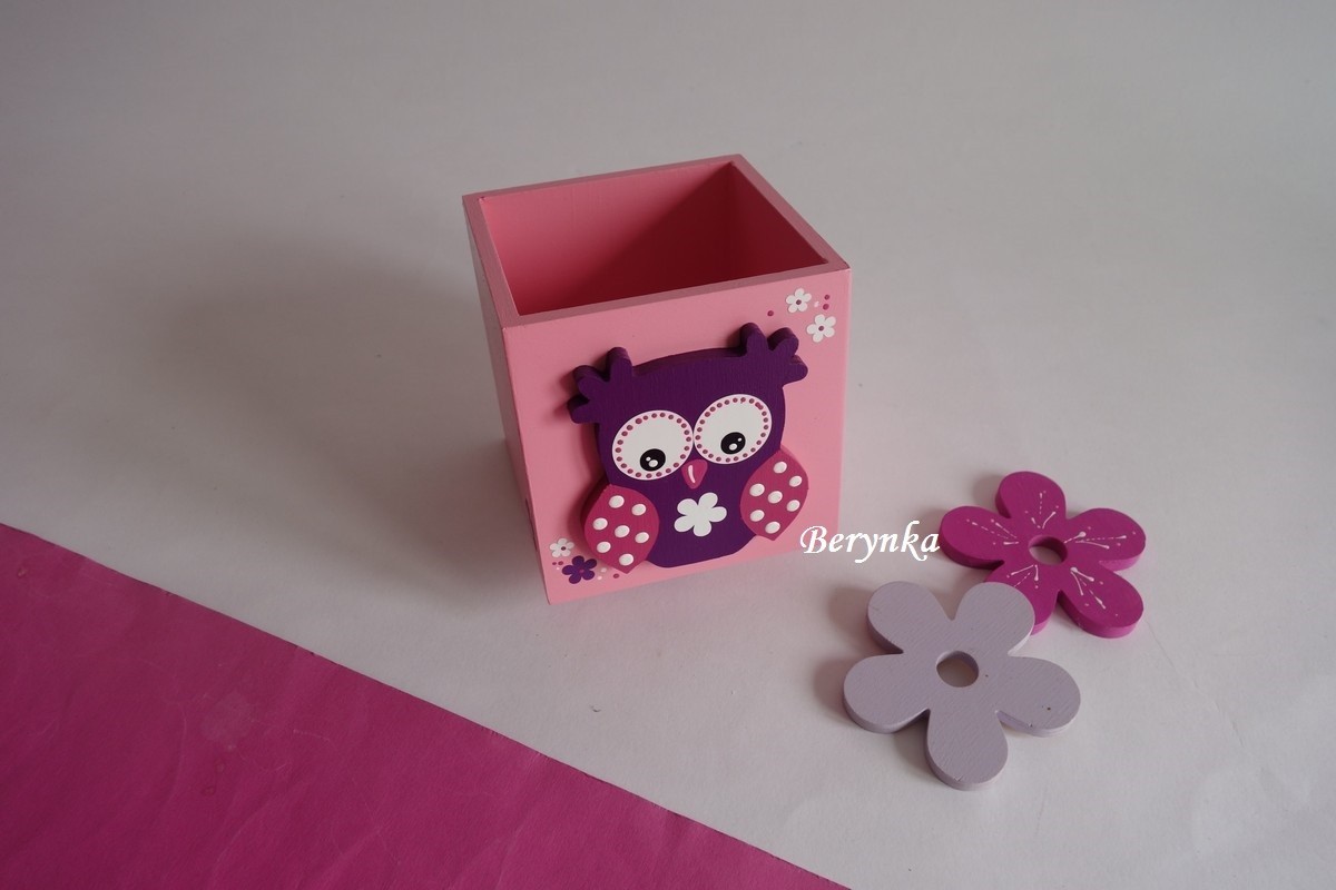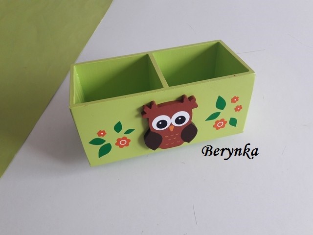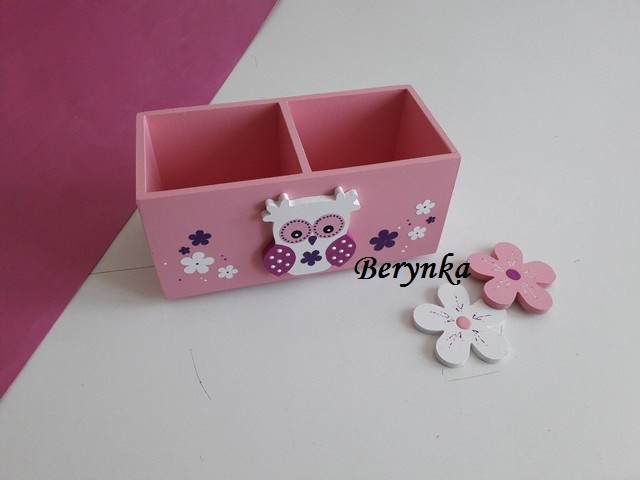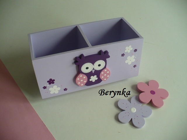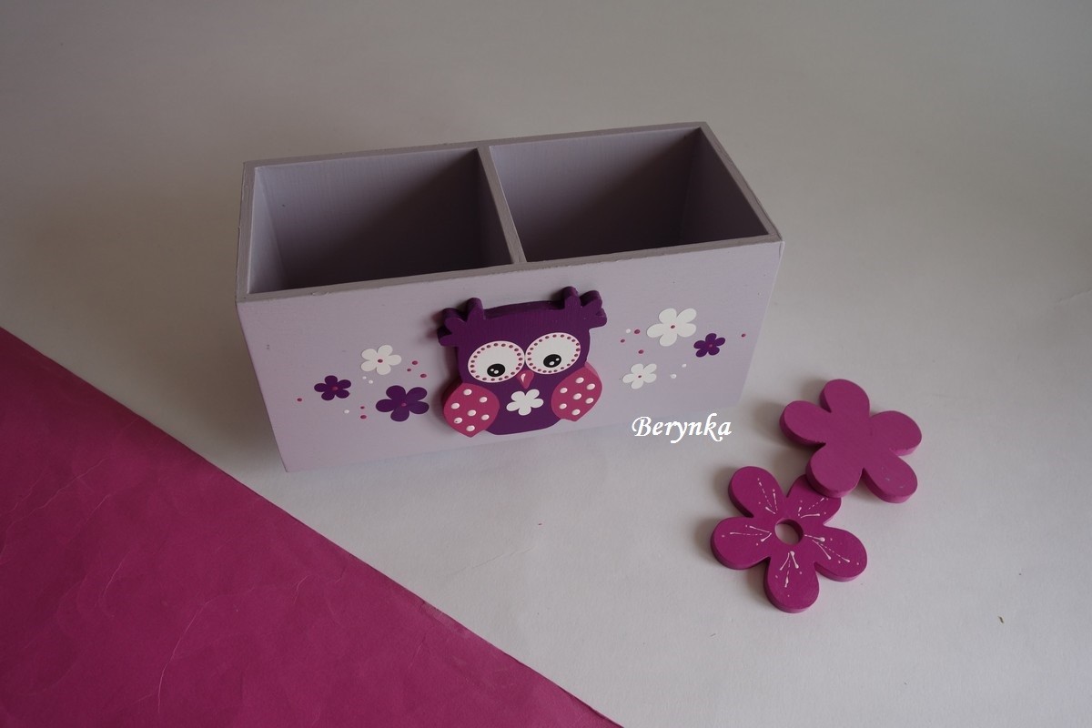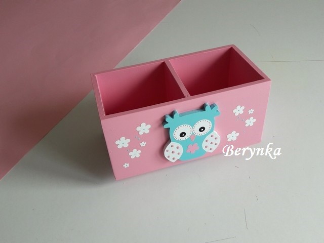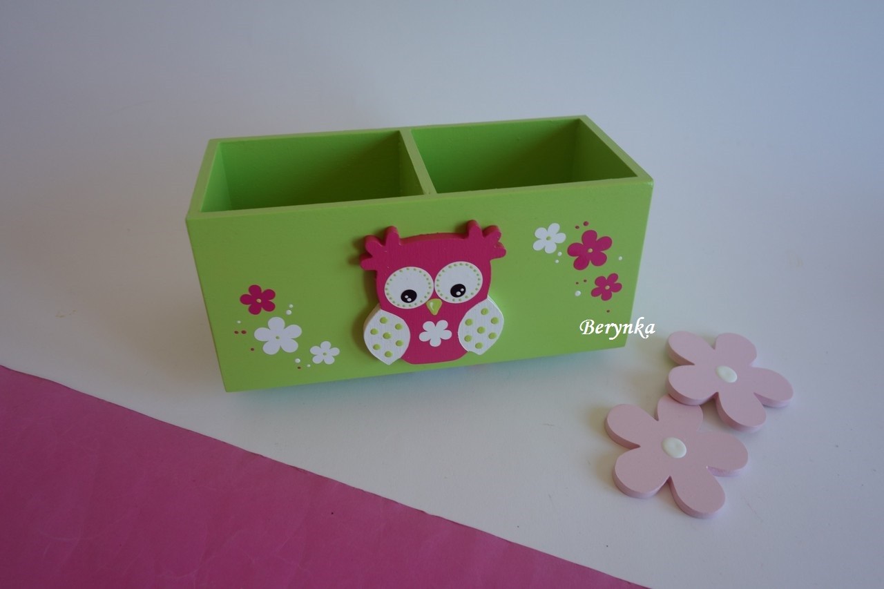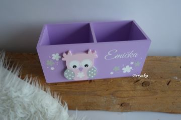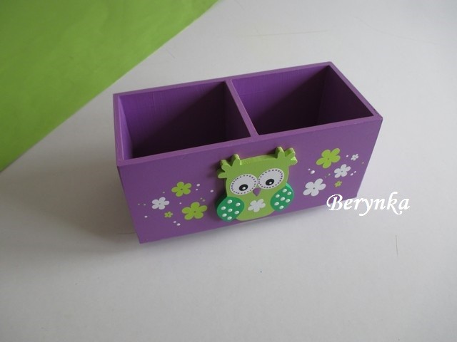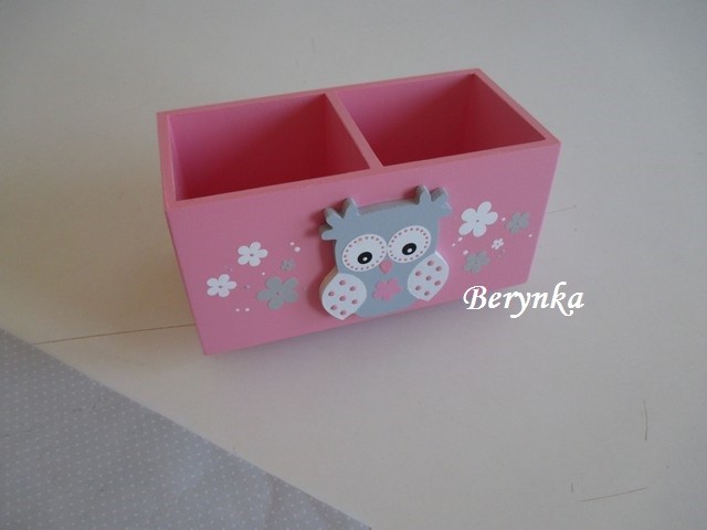 Dřevěný stojánek na tužky se sovičkou