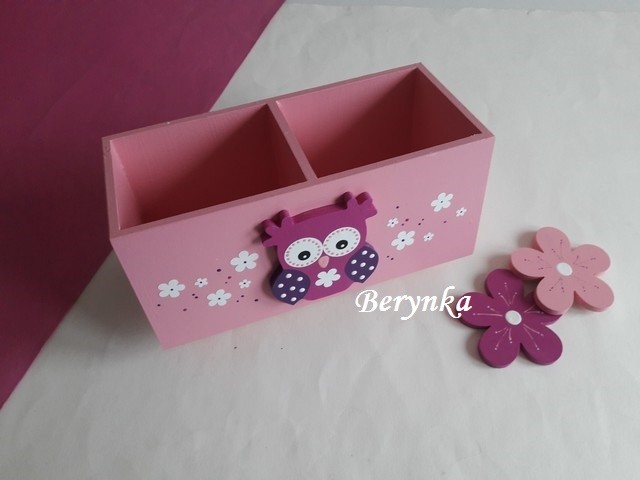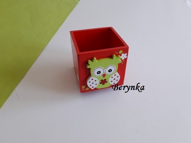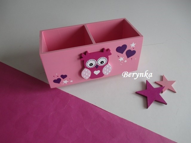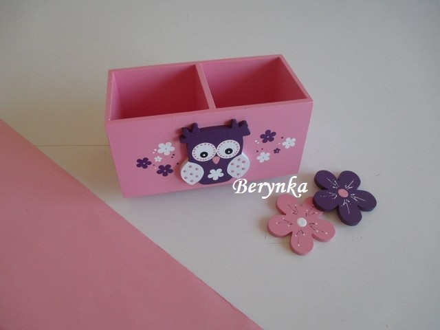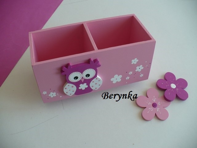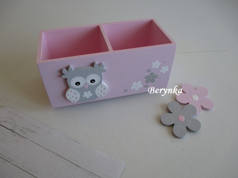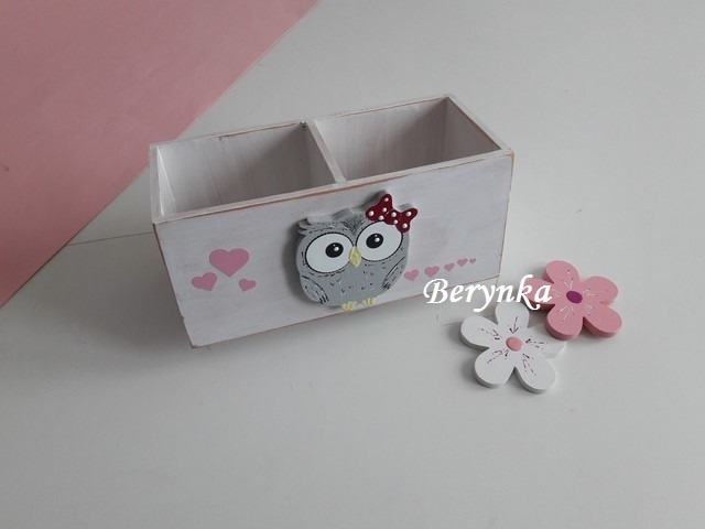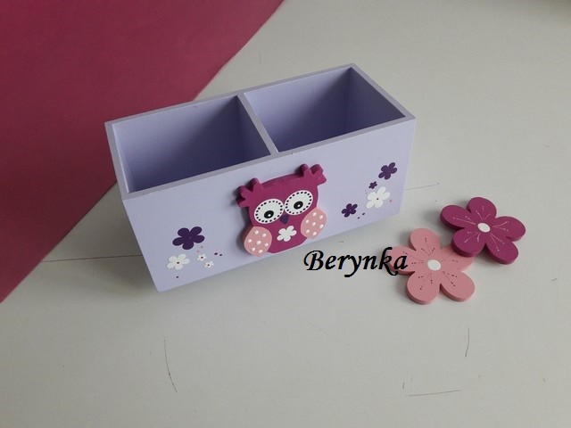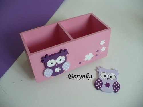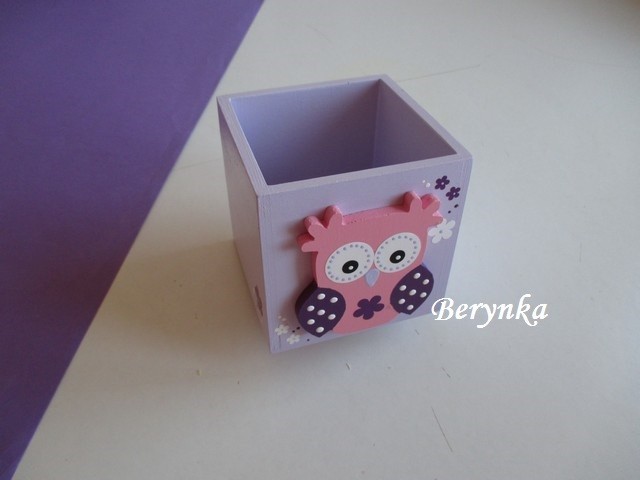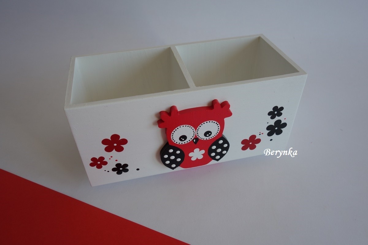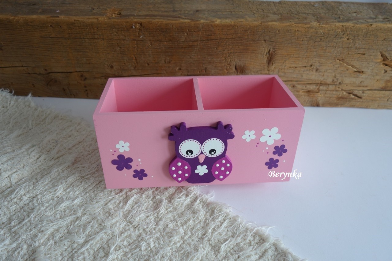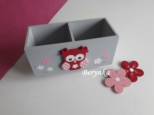 Dřevěný stojánek na tužky se sovičkou