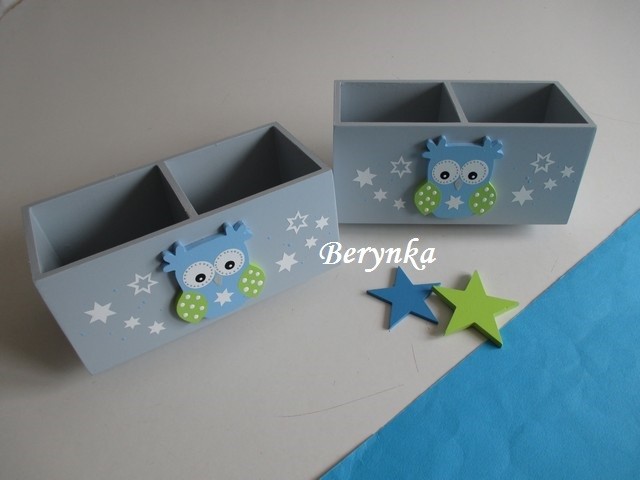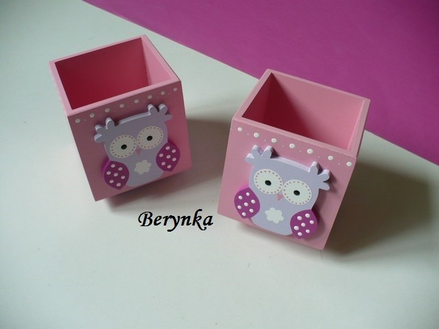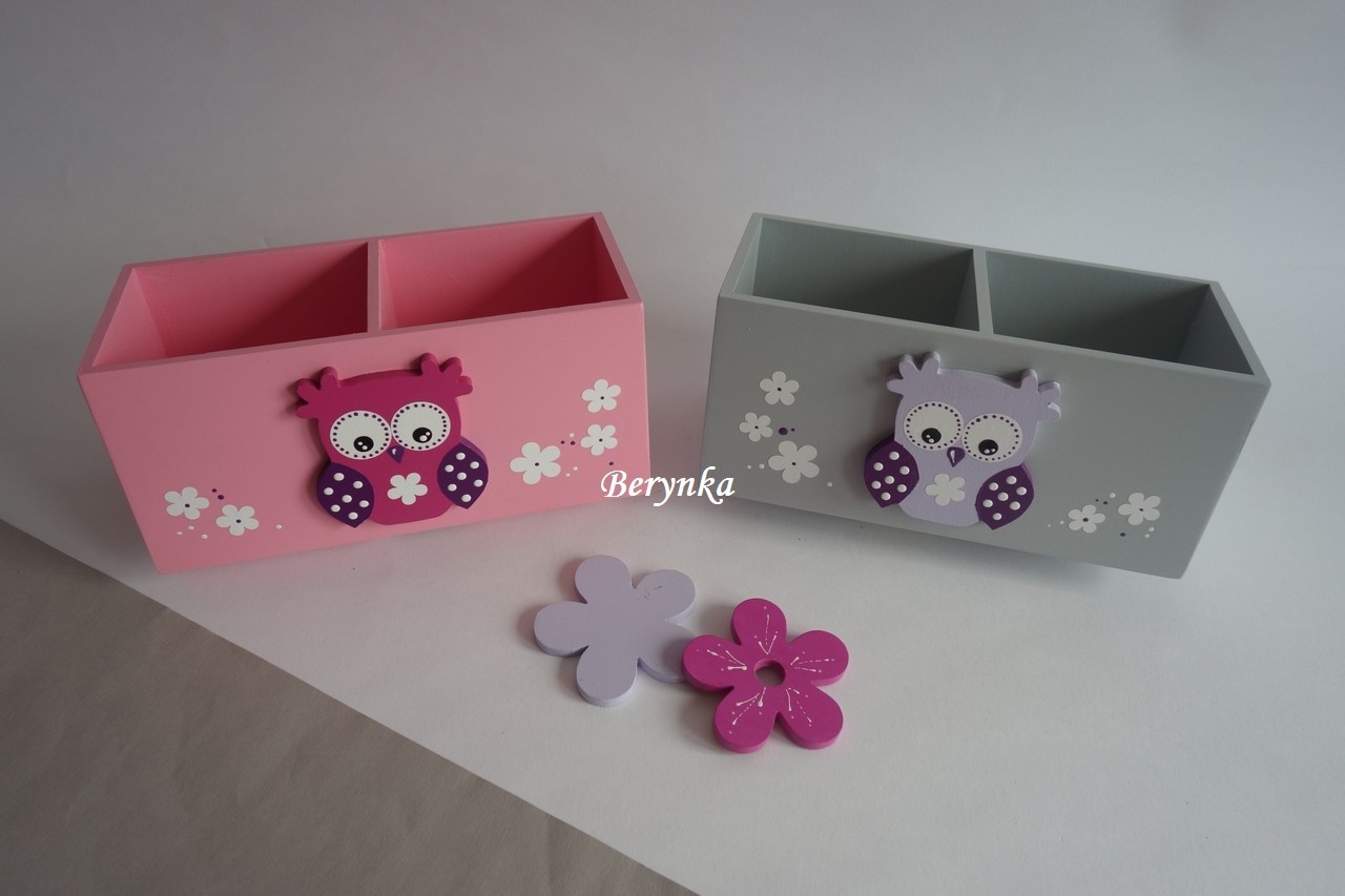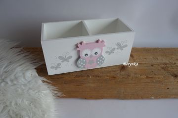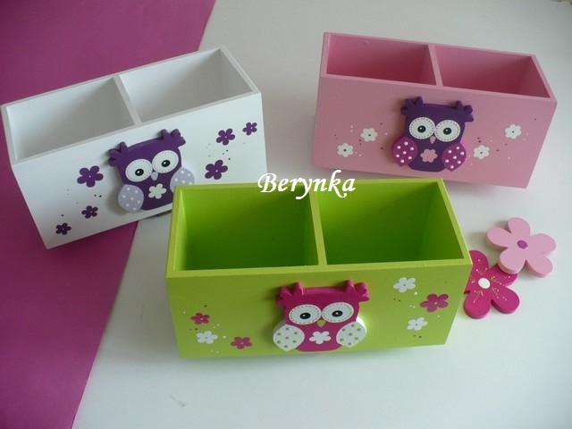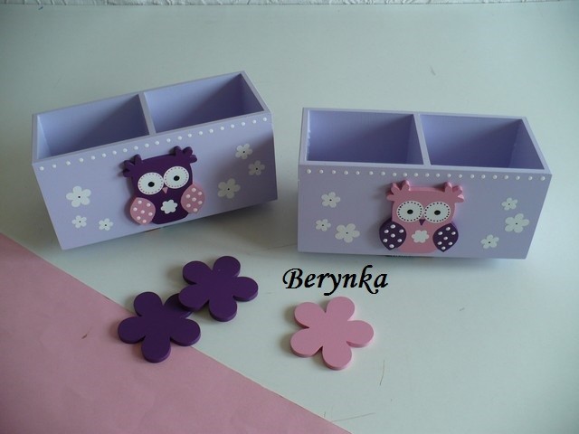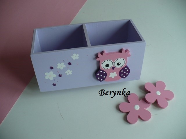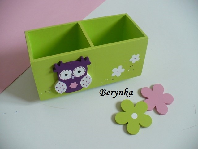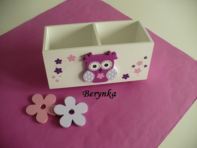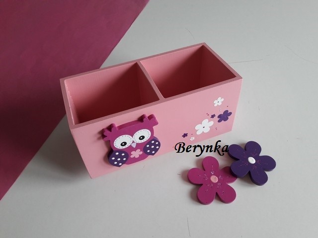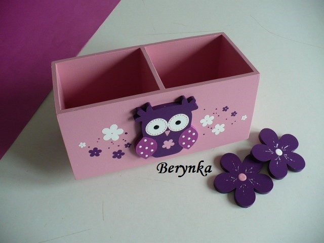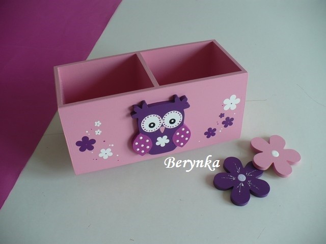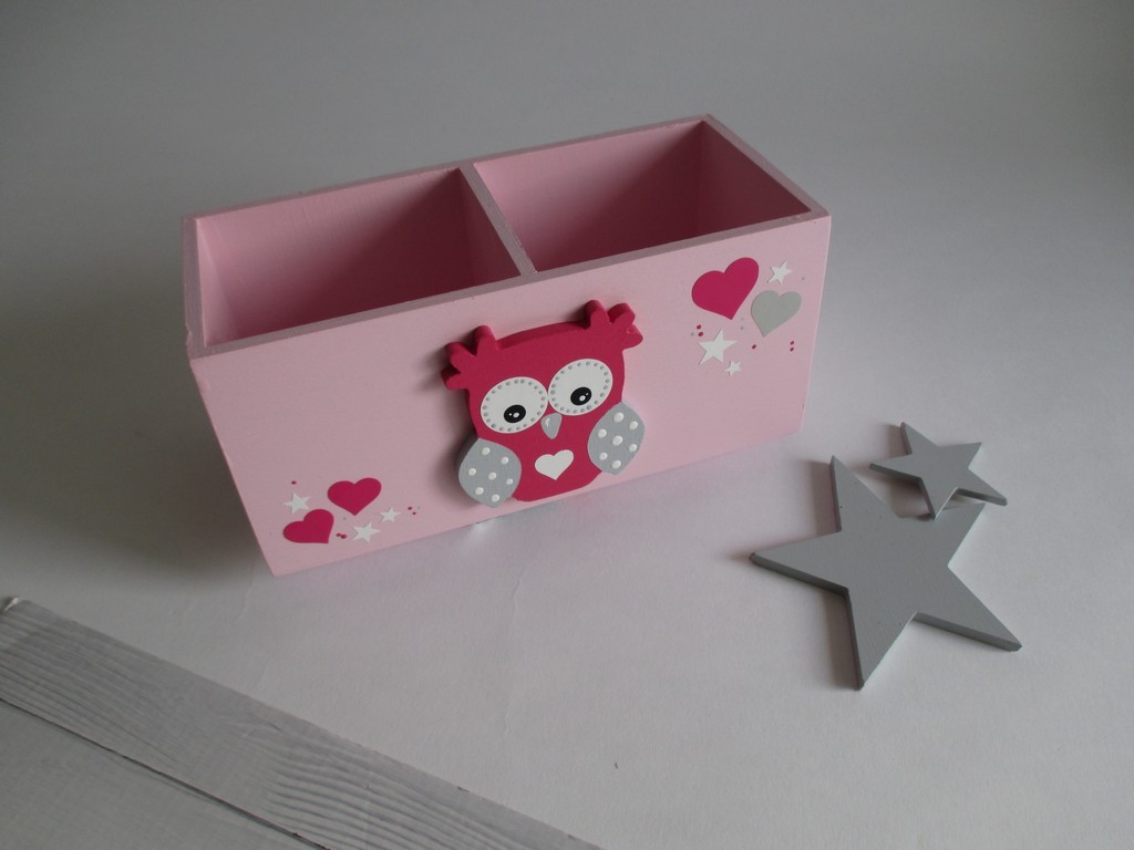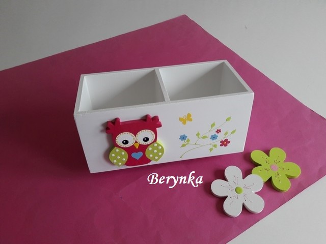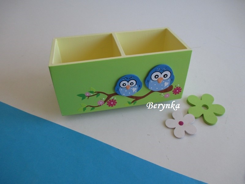 Dřevěný stojánek na tužky se sovičkou