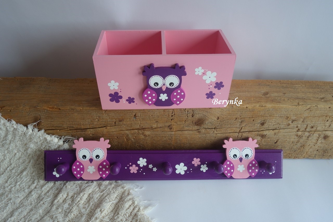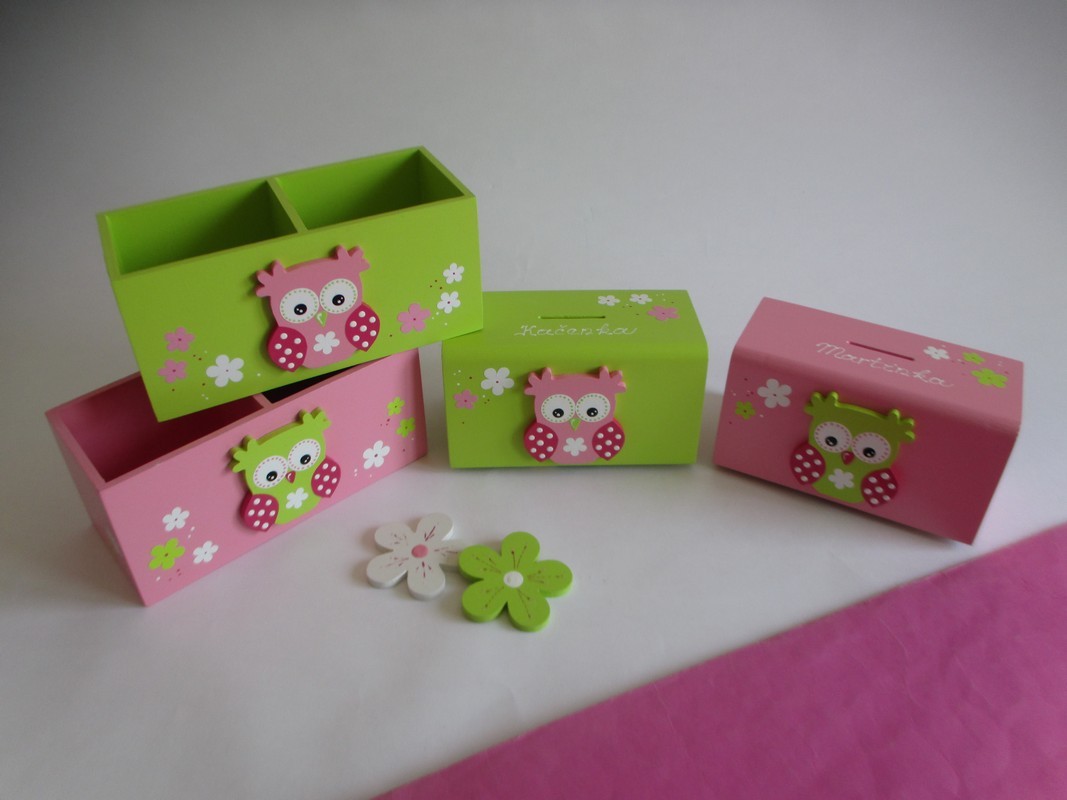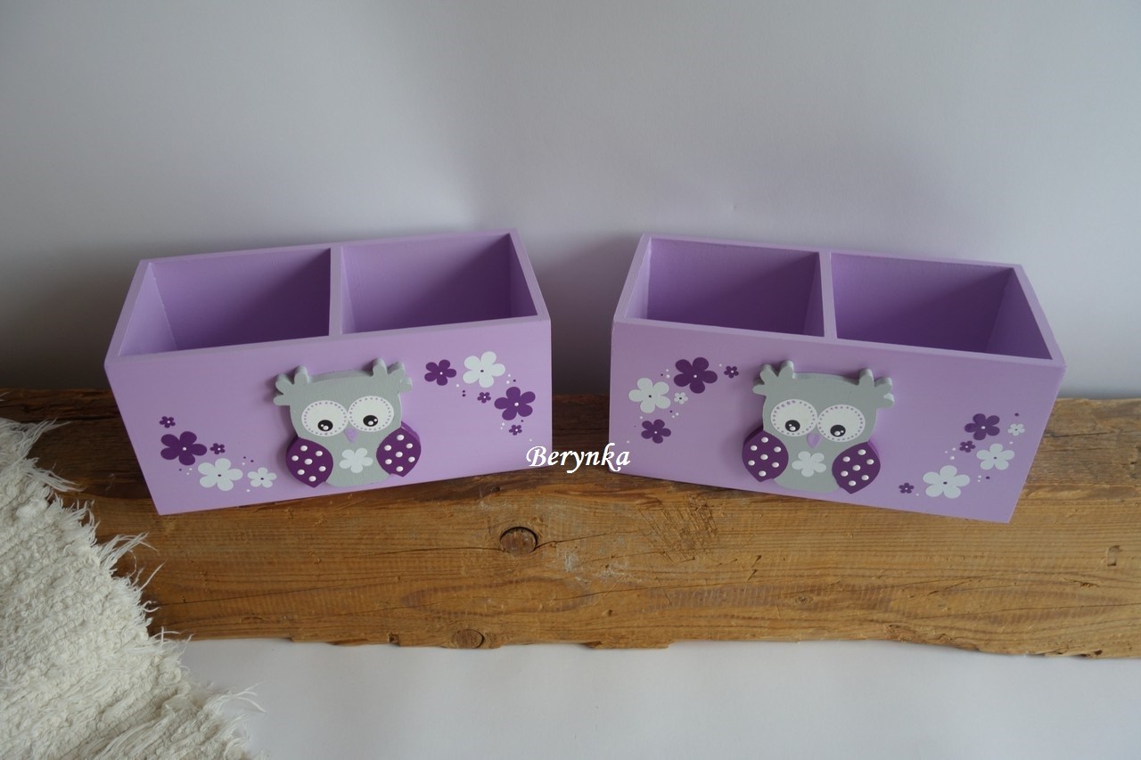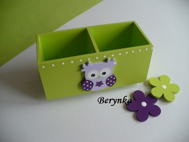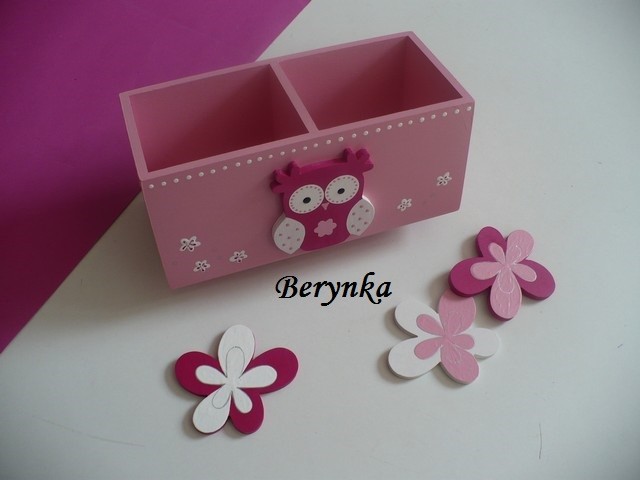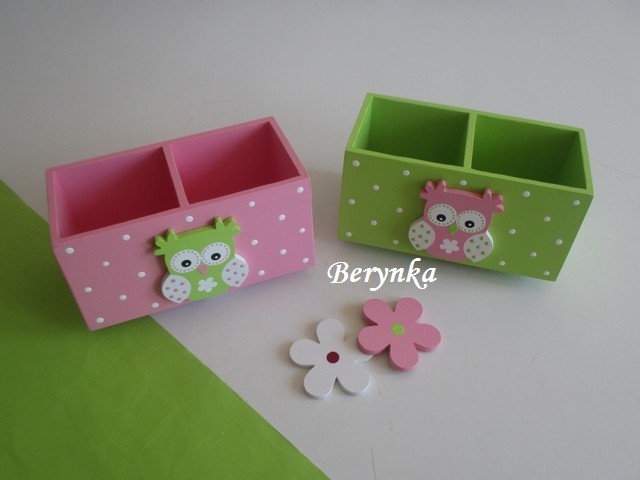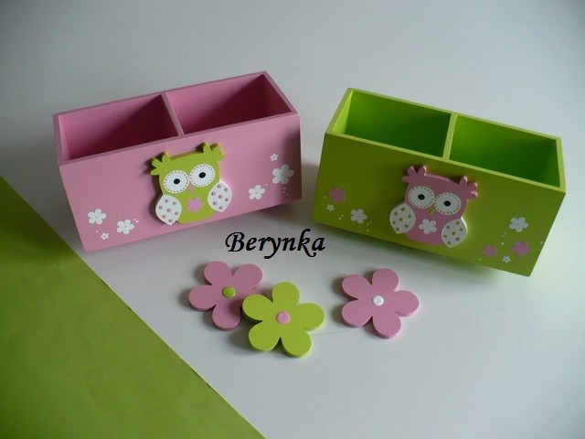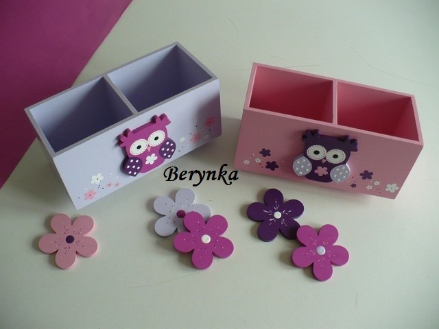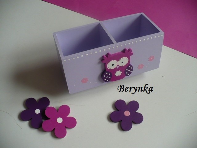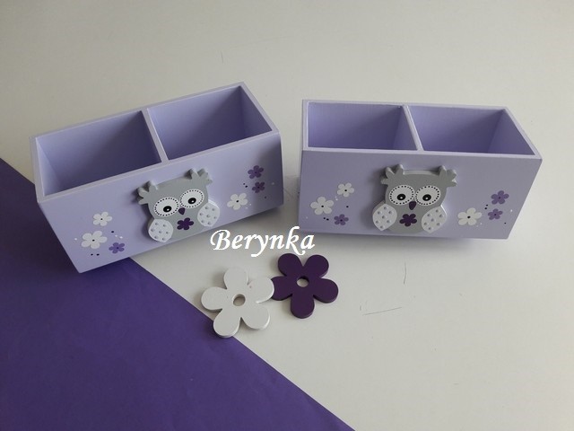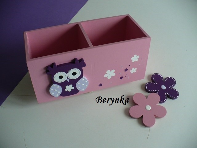 Dřevěný stojánek na tužky se sovičkou