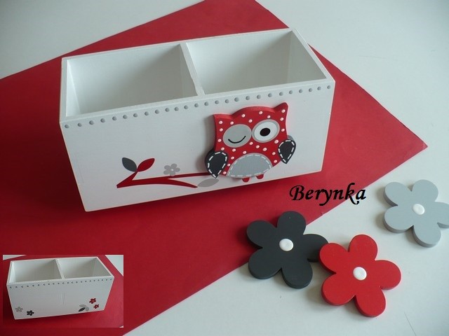- sovička je ručně vyřezaná z překližky, namalovaná a na stojánku nalepená