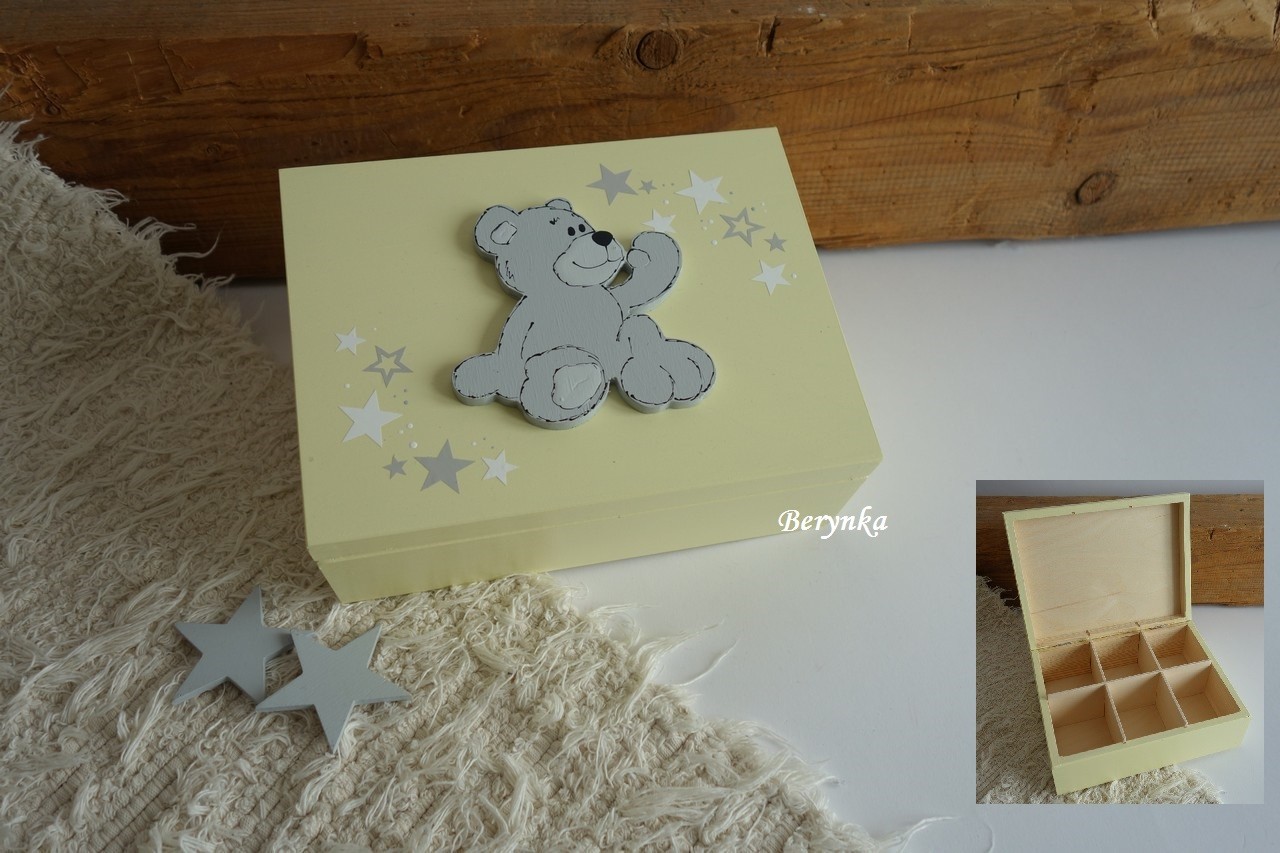 - medvídek je vyřezaný z překližky a na krabičce nalepený