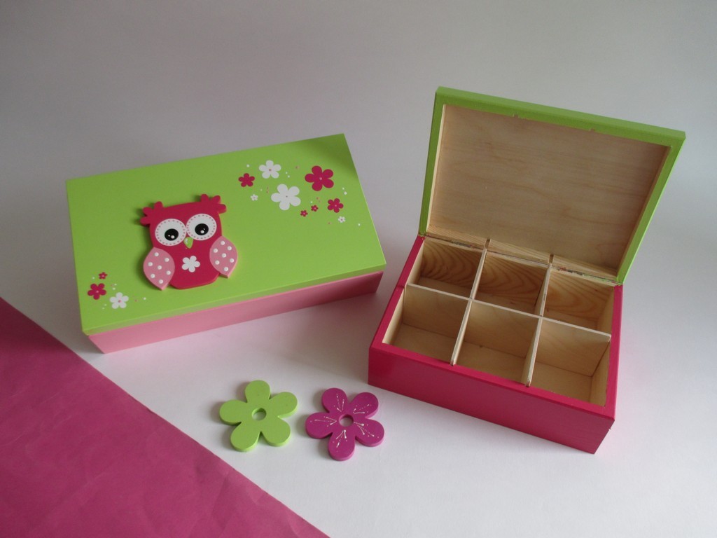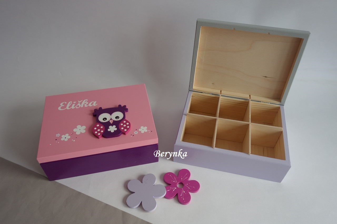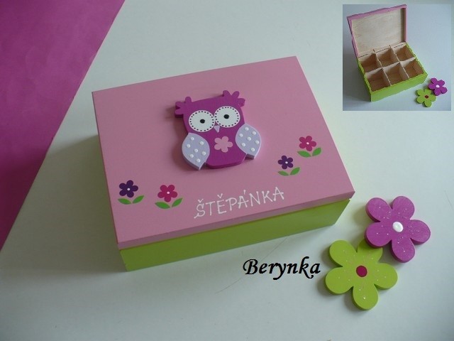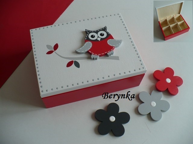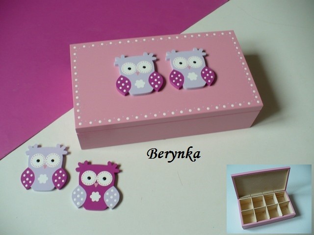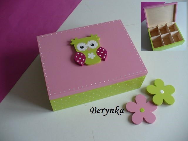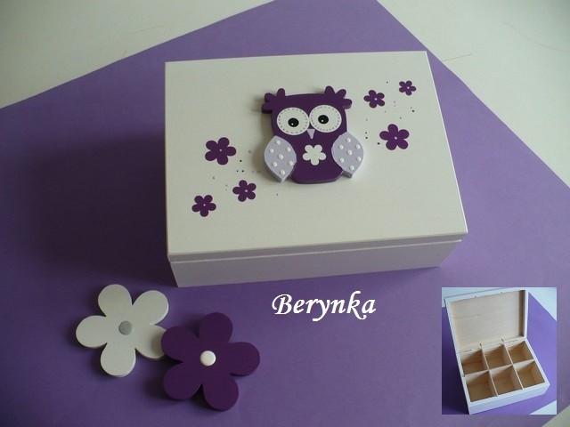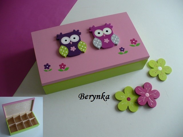 - sovička je vyřezaná z překližky a na krabičce nalepená