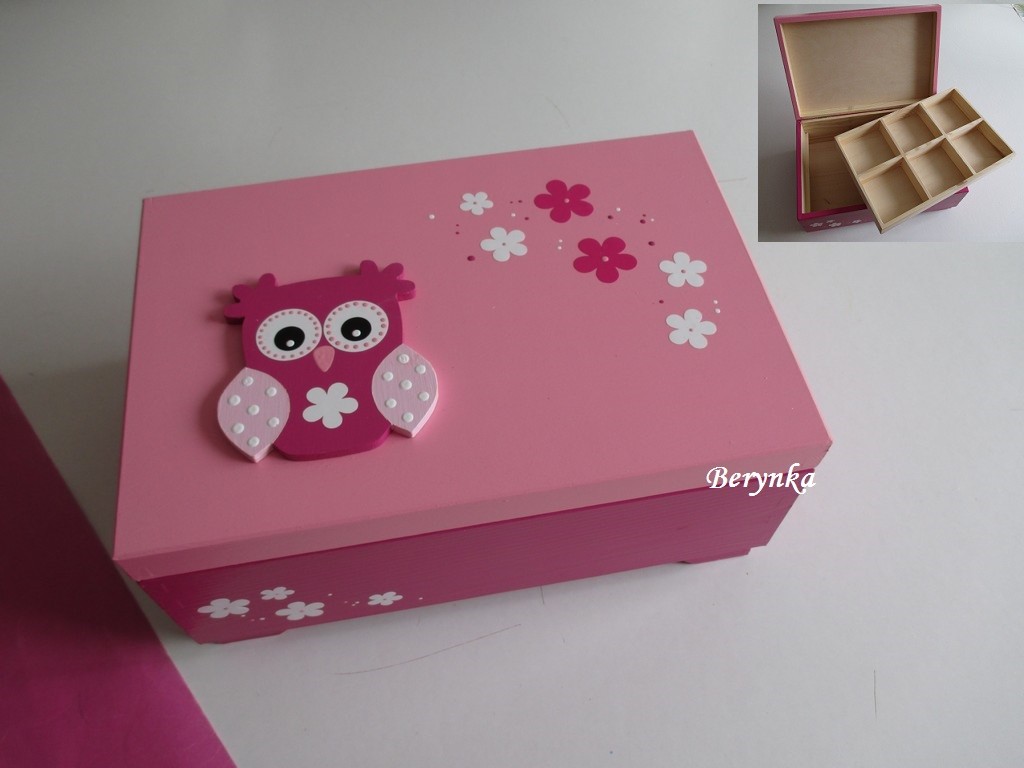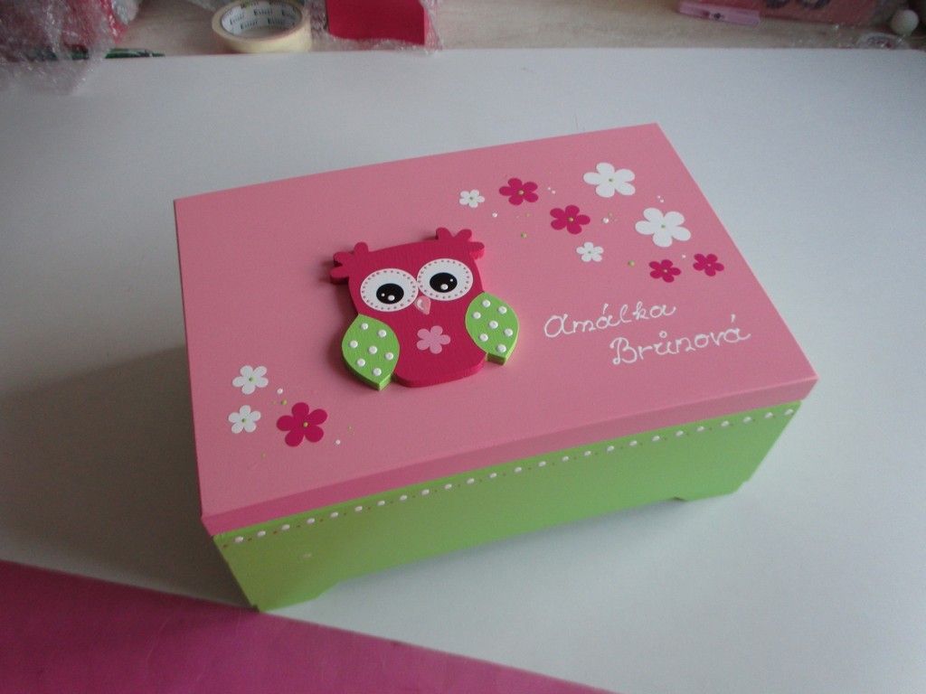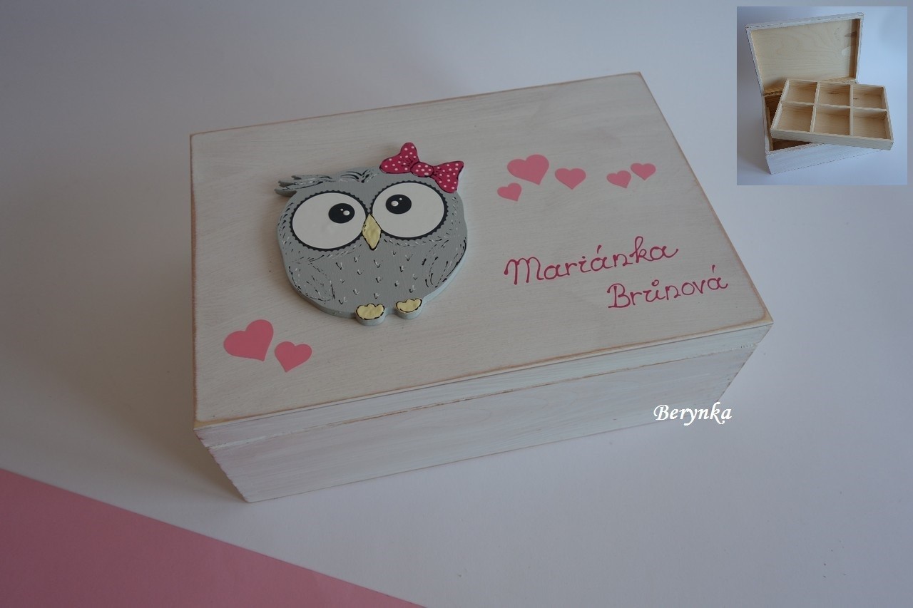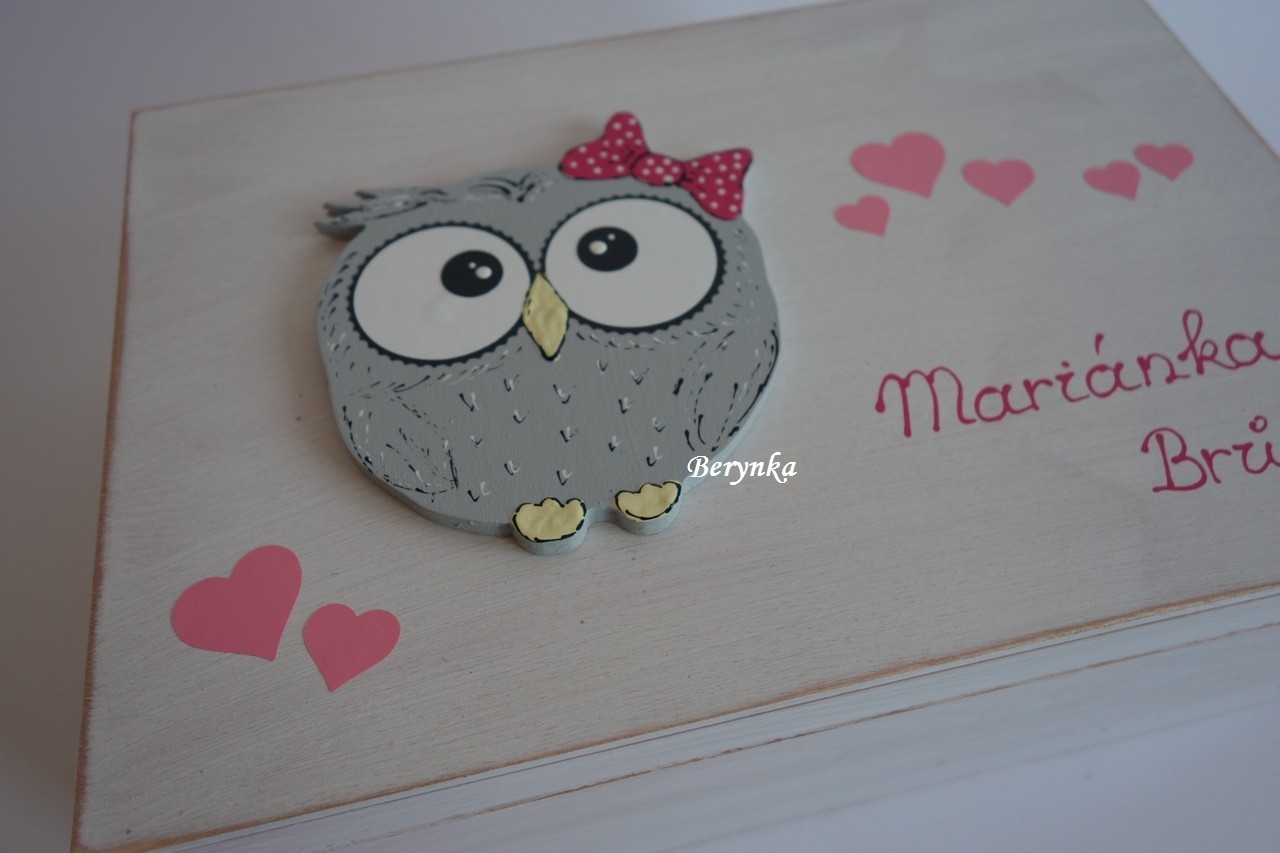 - sovička je ručně vyřezaná z překližky a na truhle nalepená