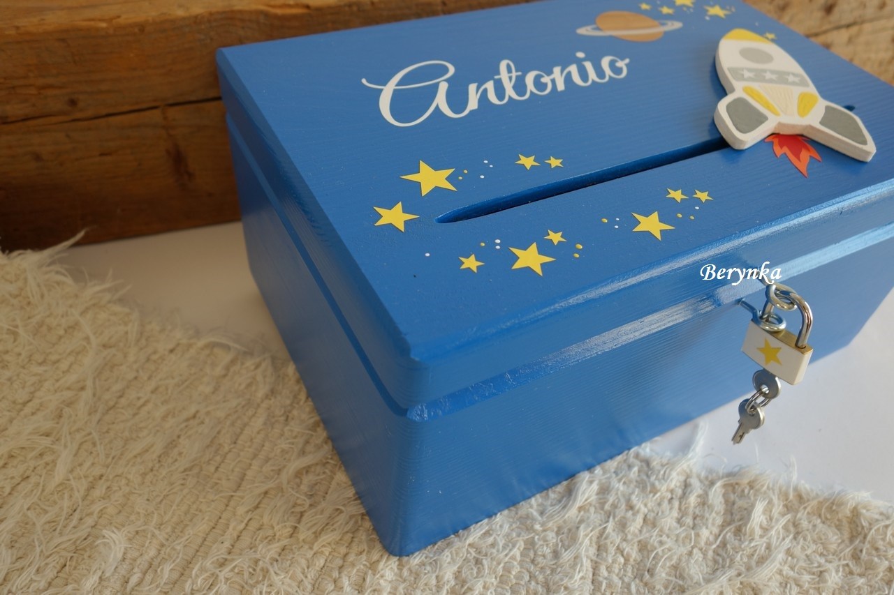 - ve víku je otvor - pro vhození mincí, bankovek i obálek