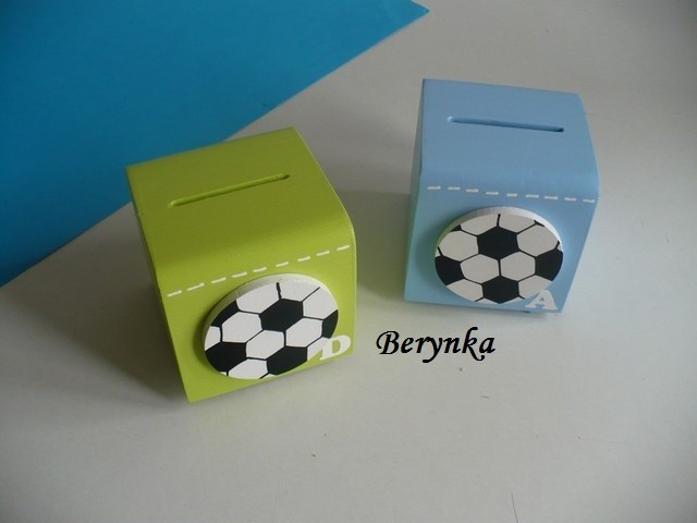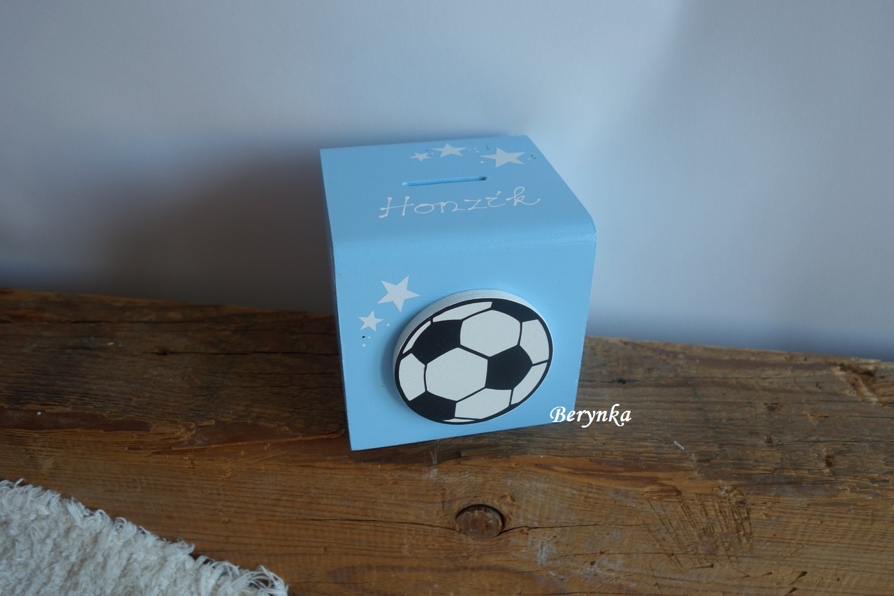 - míč je vyřezaný z překližky a na pokladničce nalepený