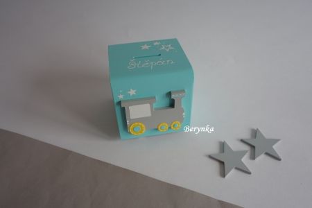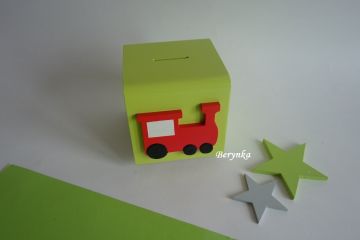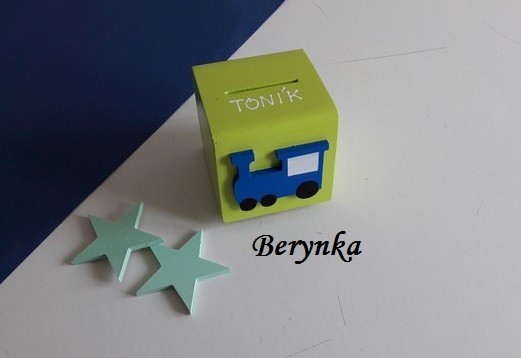 - mašinka je vyřezaná z překližky a na pokladničce nalepená