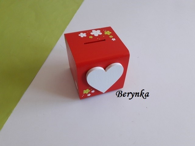 - srdíčko je vyřezané z překližky a na pokladničce nalepené