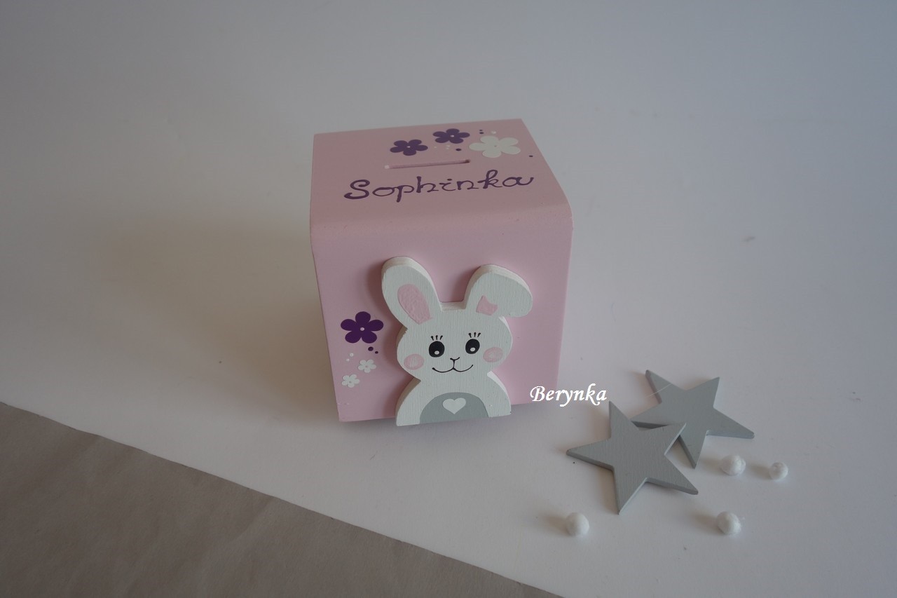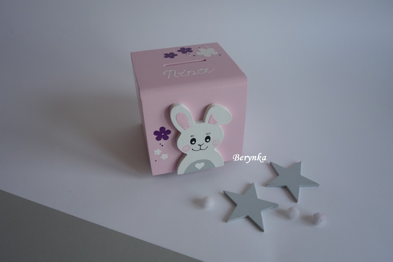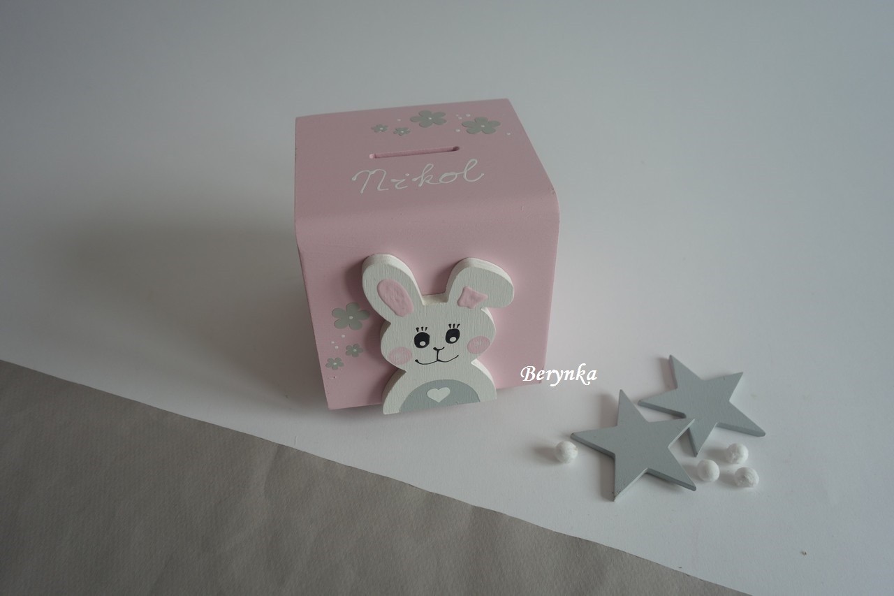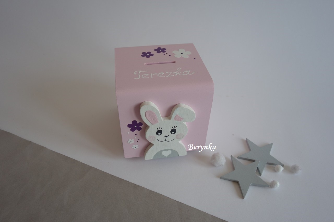 - zajíček je vyřezaný z překližky a na pokladničce nalepený