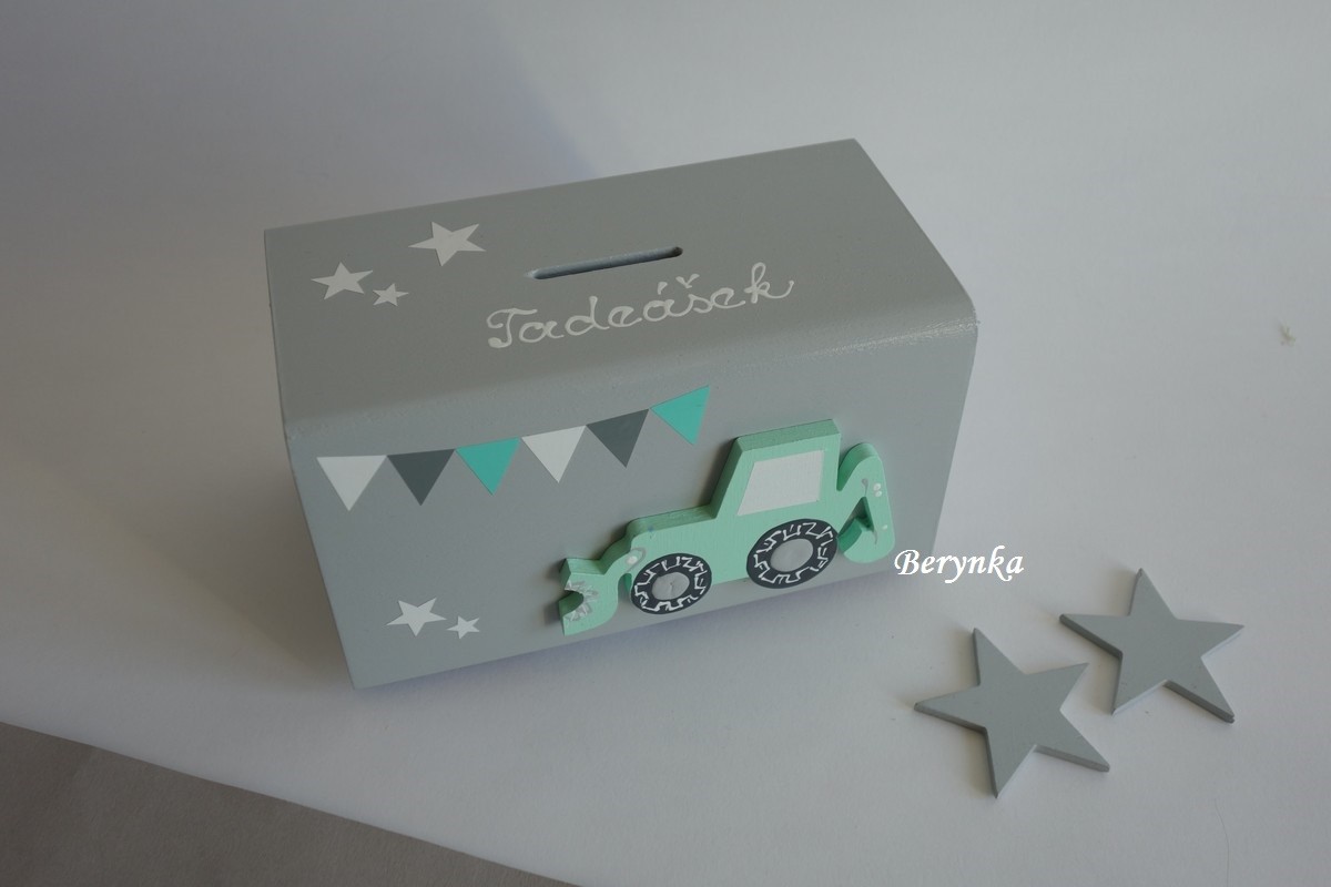 - pokladnička je ručně malovaná, zdobená a přelakovaná - je možné jí snadno otřít