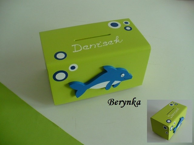 Dřevěná pokladnička s delfínem