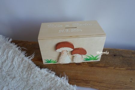 - dekorace je ručně vyřezaná z překližky a na pokladničce nalepená
