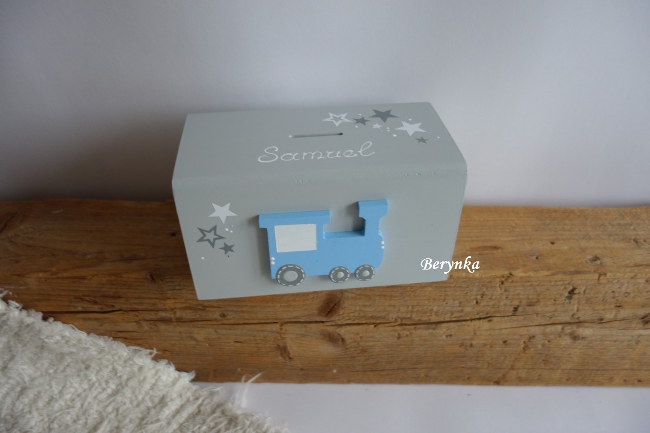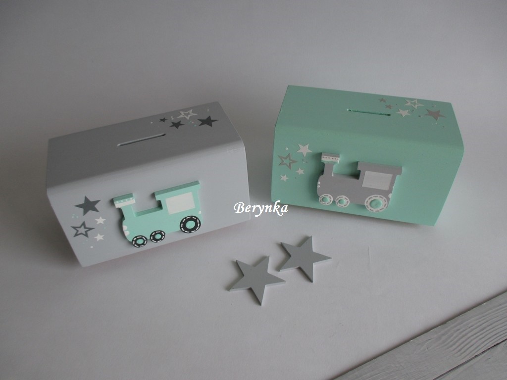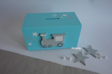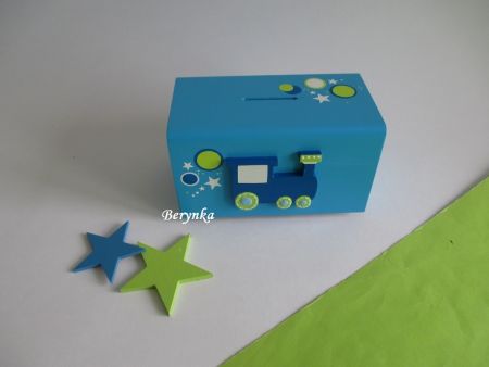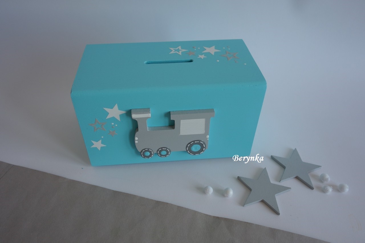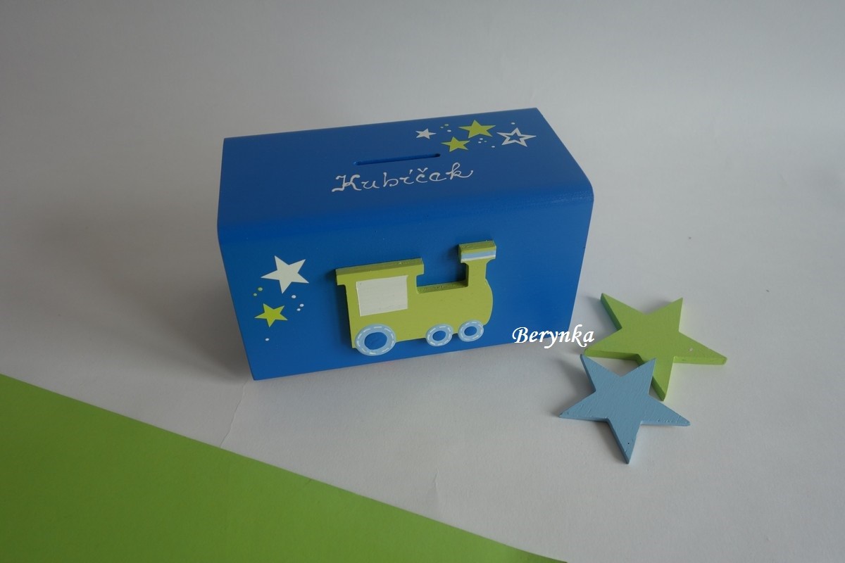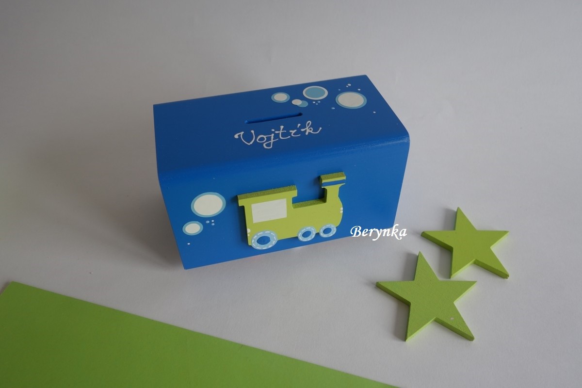 Dřevěná pokladnička s mašinkou
