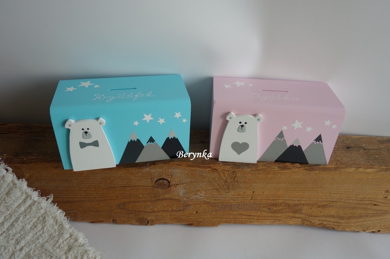 Dětská dřevěná kasička v nordic stylu pro kluky i holky