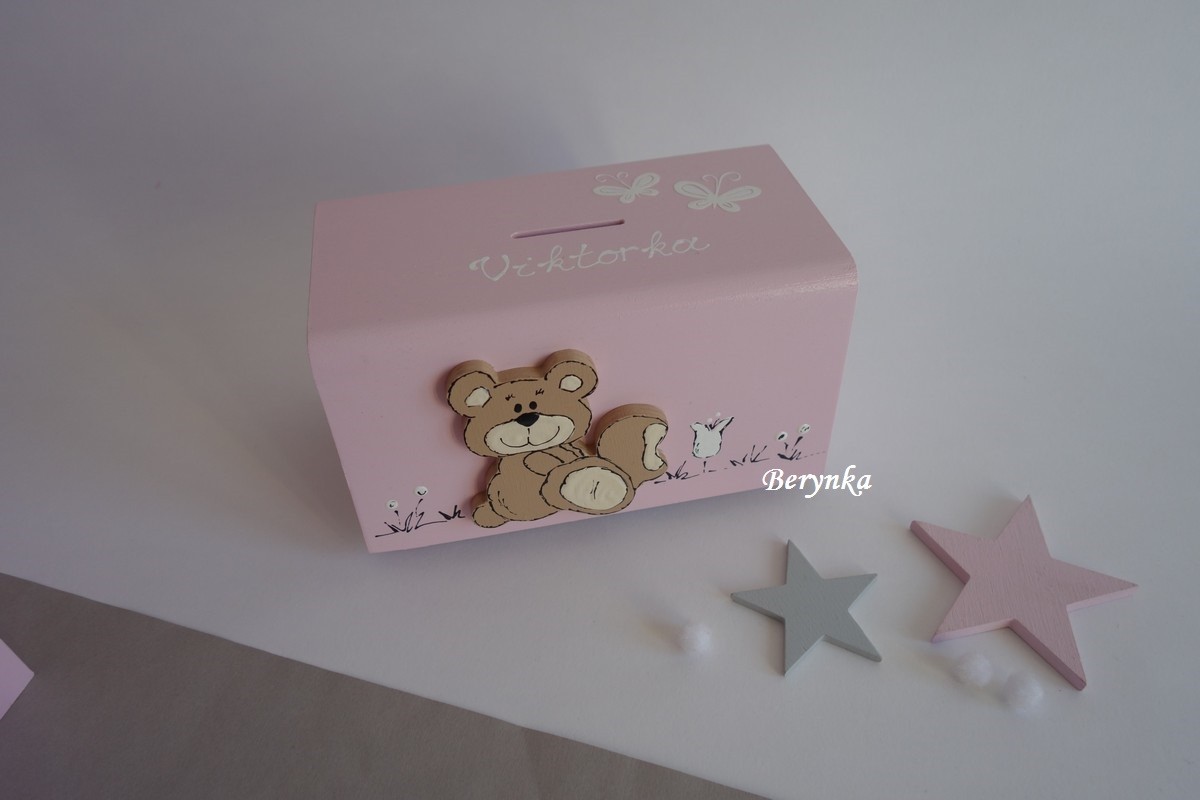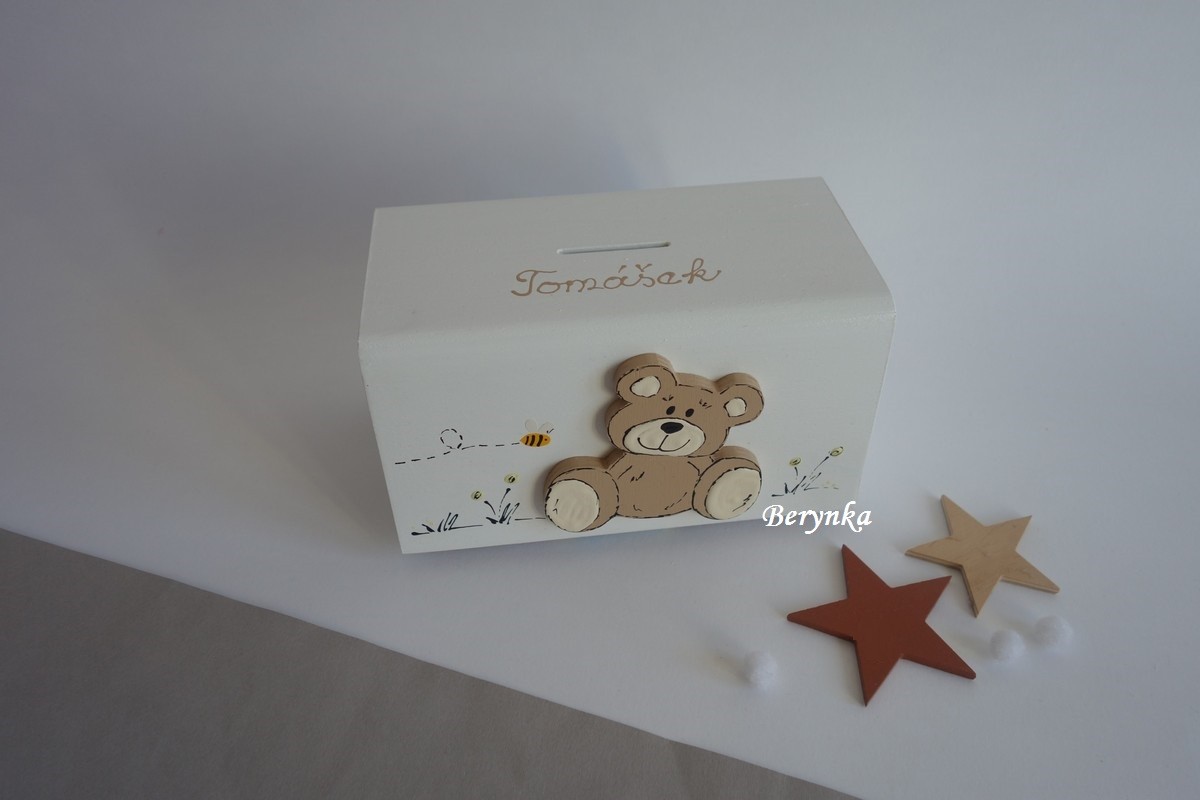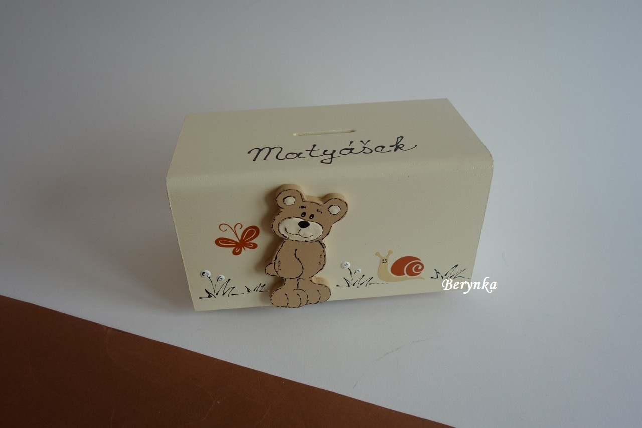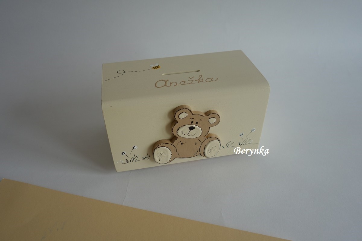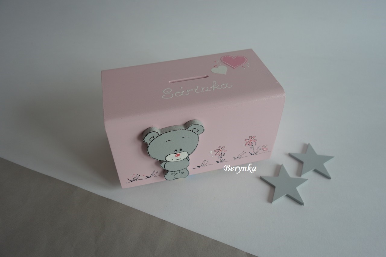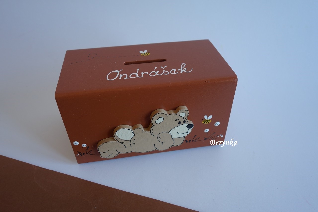 Dřevěná pokladnička s medvídkem