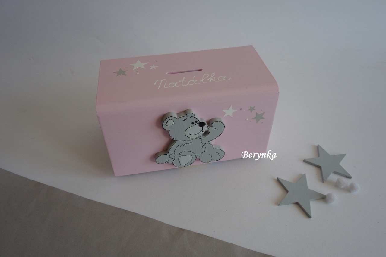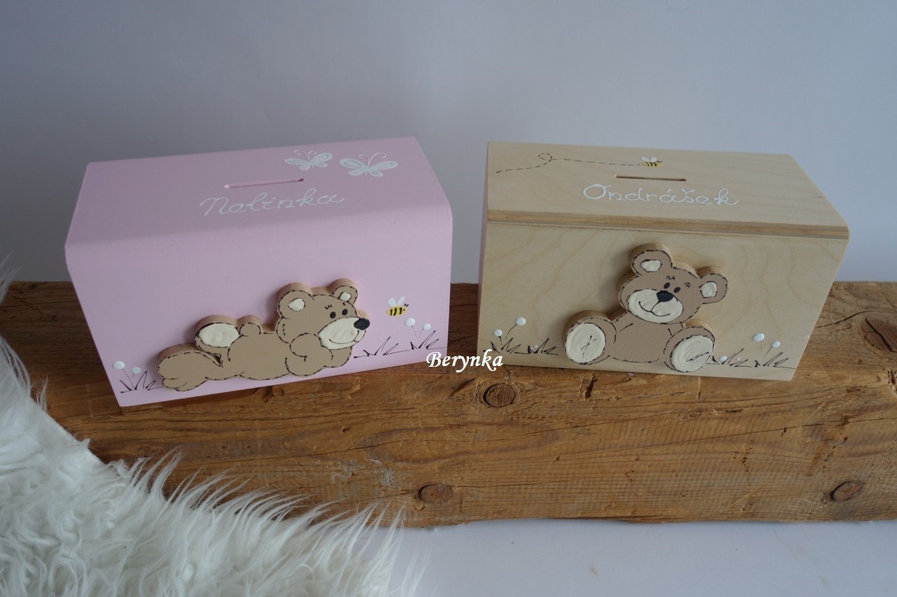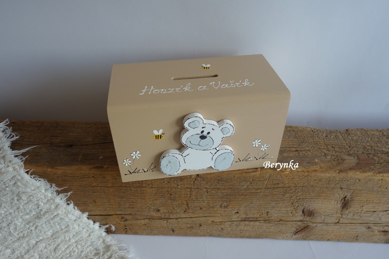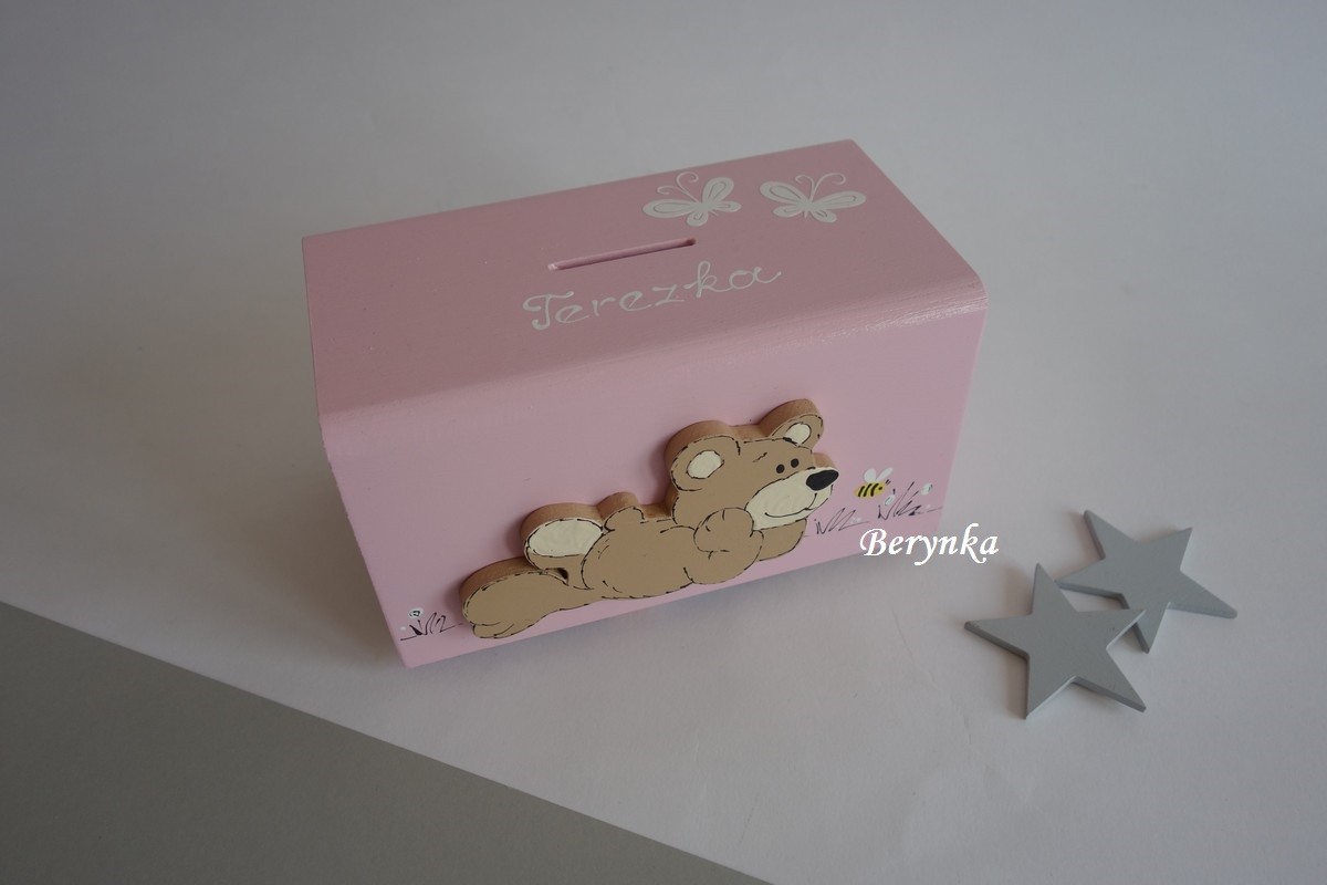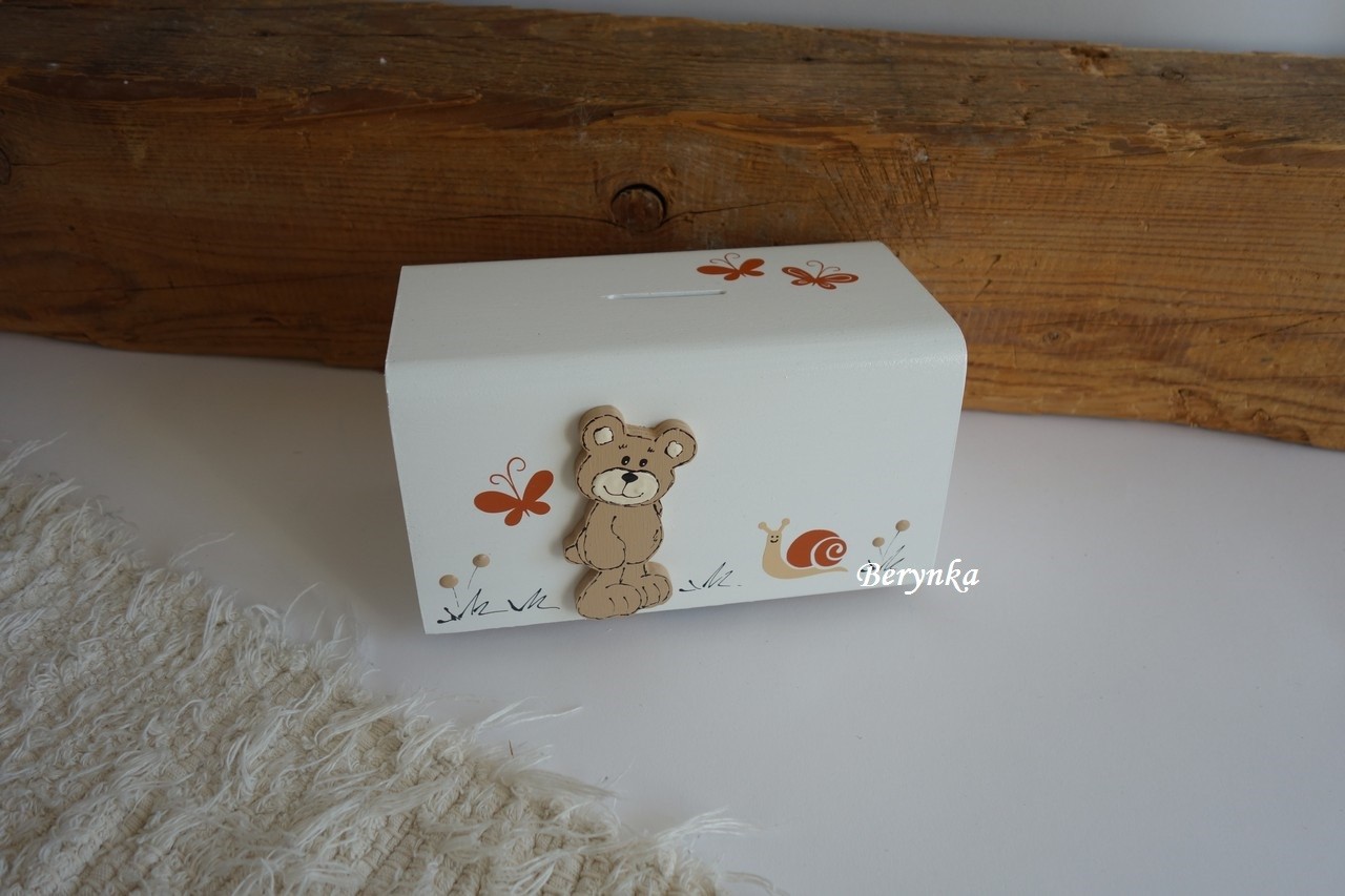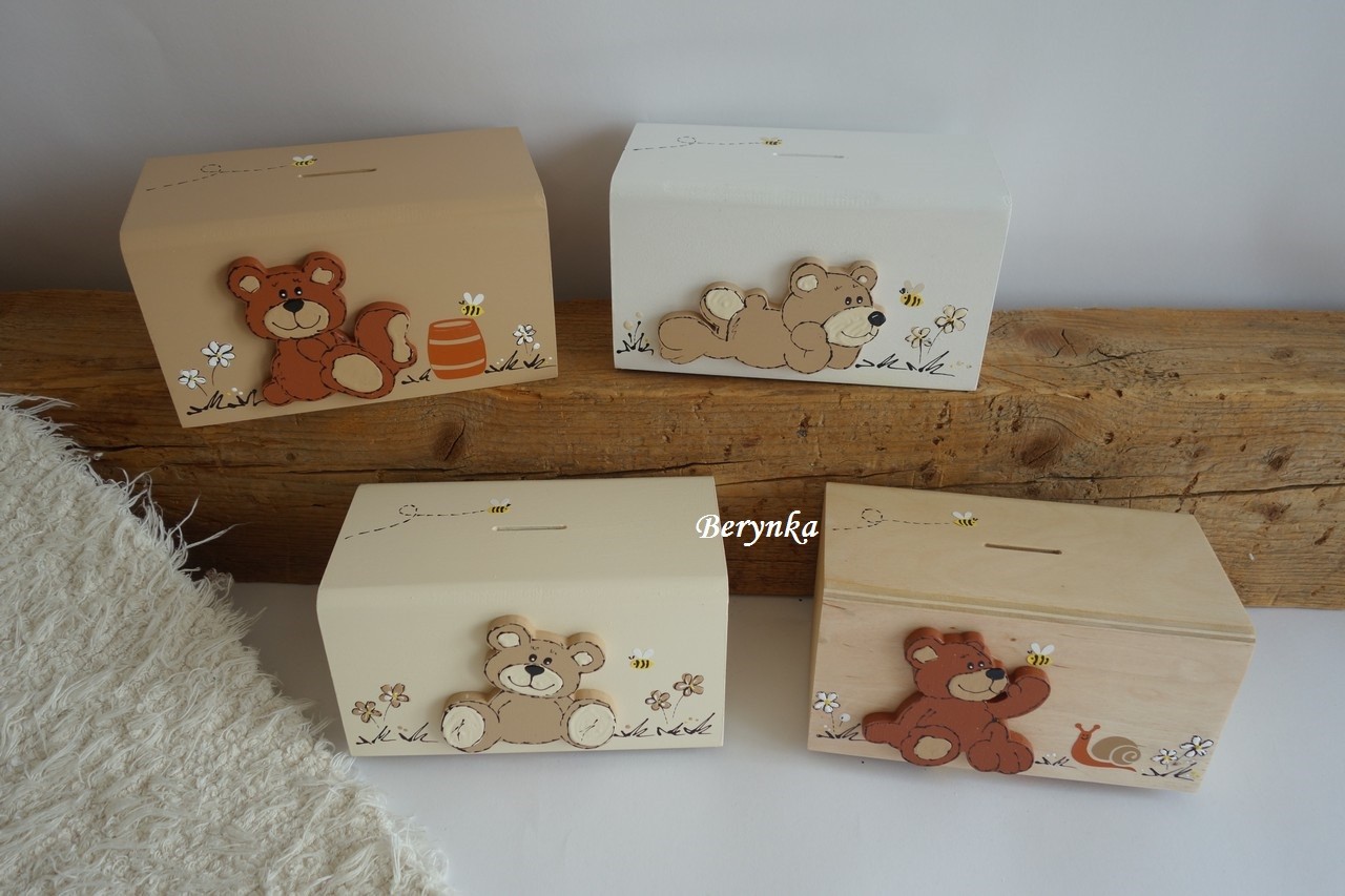Dřevěná pokladnička s medvídkem